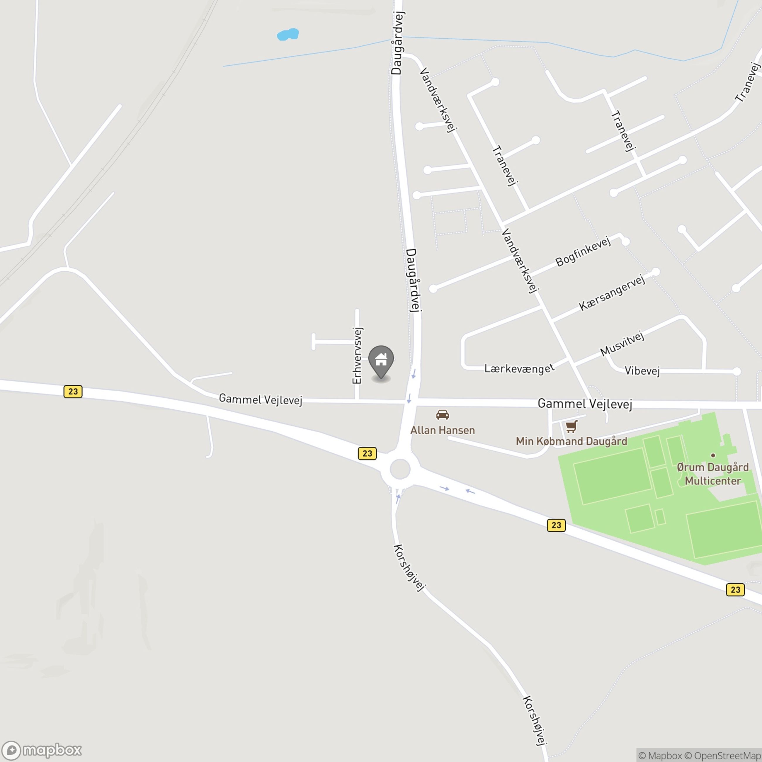 Ejendommen er beliggende ved rundkørslen der forbinder vejene, Daugårdvej og Juelsmindevej. Via Juelsmindevej er der god adgang til Vejle, og på Daugårdvej, direkte adgang til Hedensted.