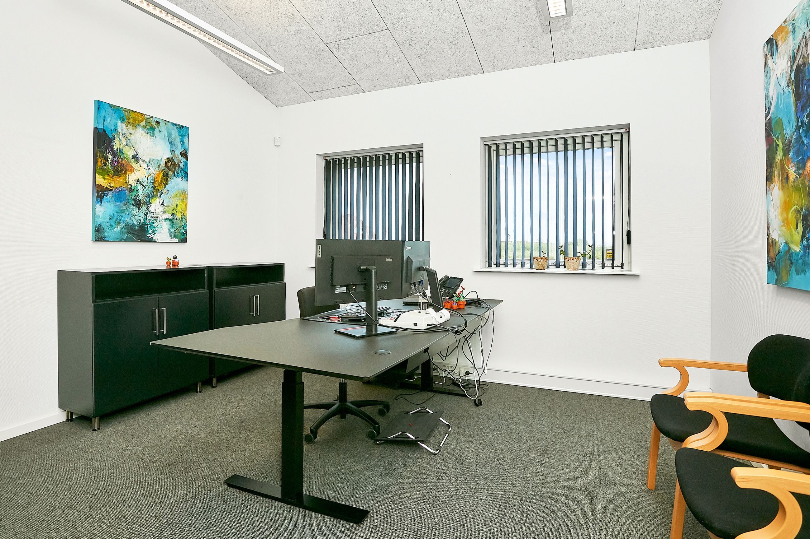 Ejendommen på Erhvervsvej 2 i Daugård er en flot og moderne kontorbygning med tidssvarende kontorfaciliteter.