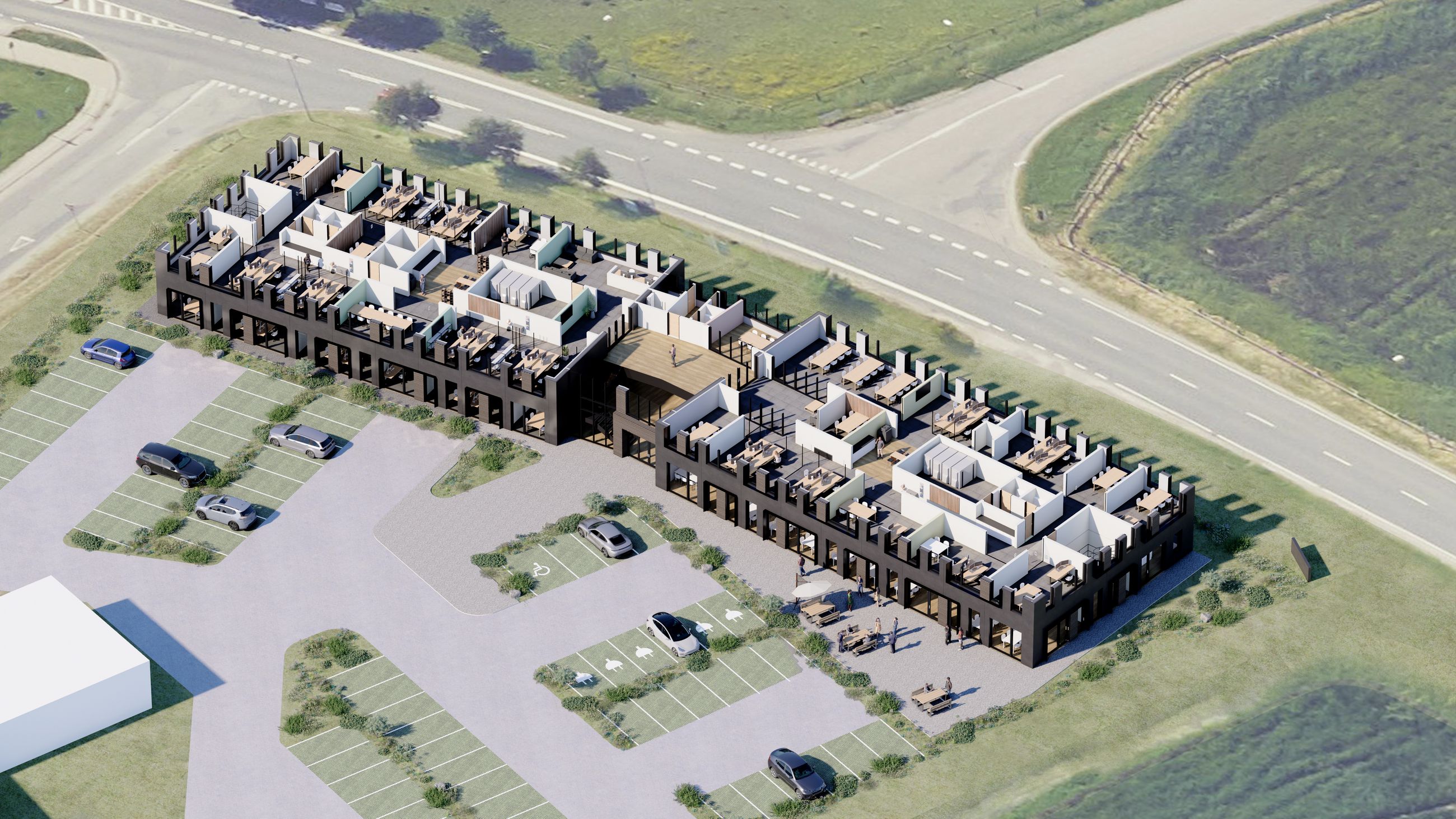 For både dit personale og jeres kunder er der fremragende parkeringsmuligheder, hvilket gør det nemt at tilgå bygningen og skabe en bekvem arbejdsdag for alle. Der opsættes ladestandere med mulighed for opladning med Clever.