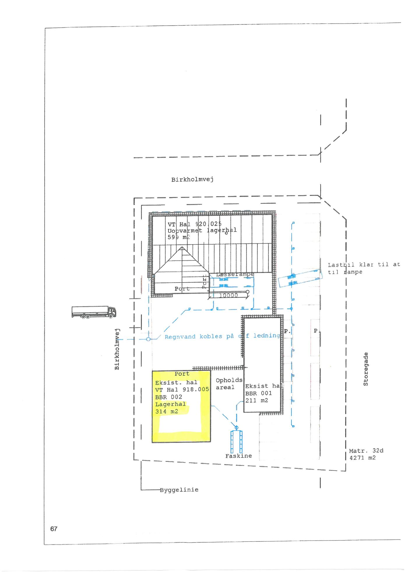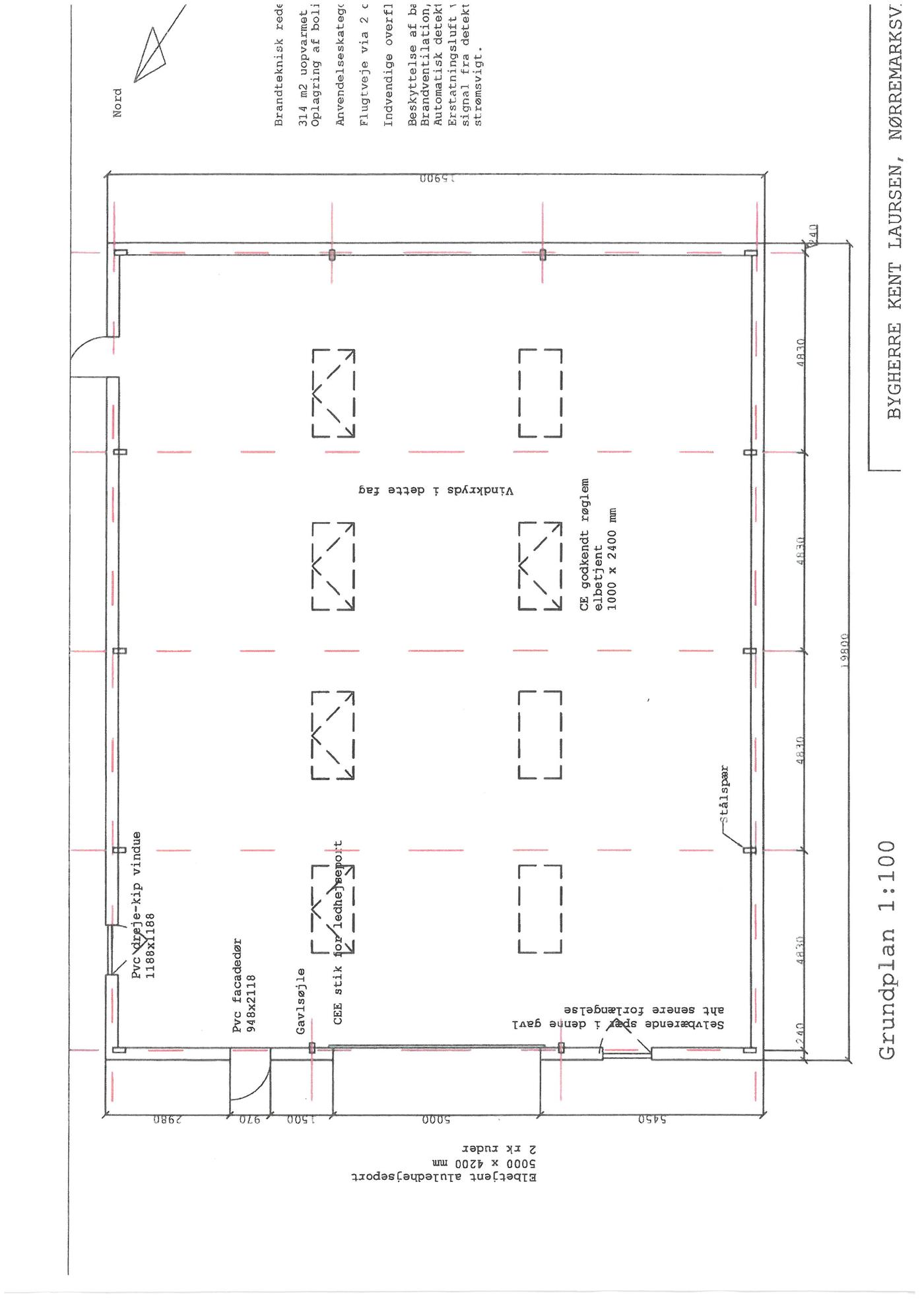 Isoleret og opvarmet lagerhal på 314 m² opført i 2019. Loftshøjde fra ca. 4 m i sider til ca. 6,5 m i kip. Der er elbetjent aluledhejseport - ca. 5 m bred og ca. 4,2 m høj.