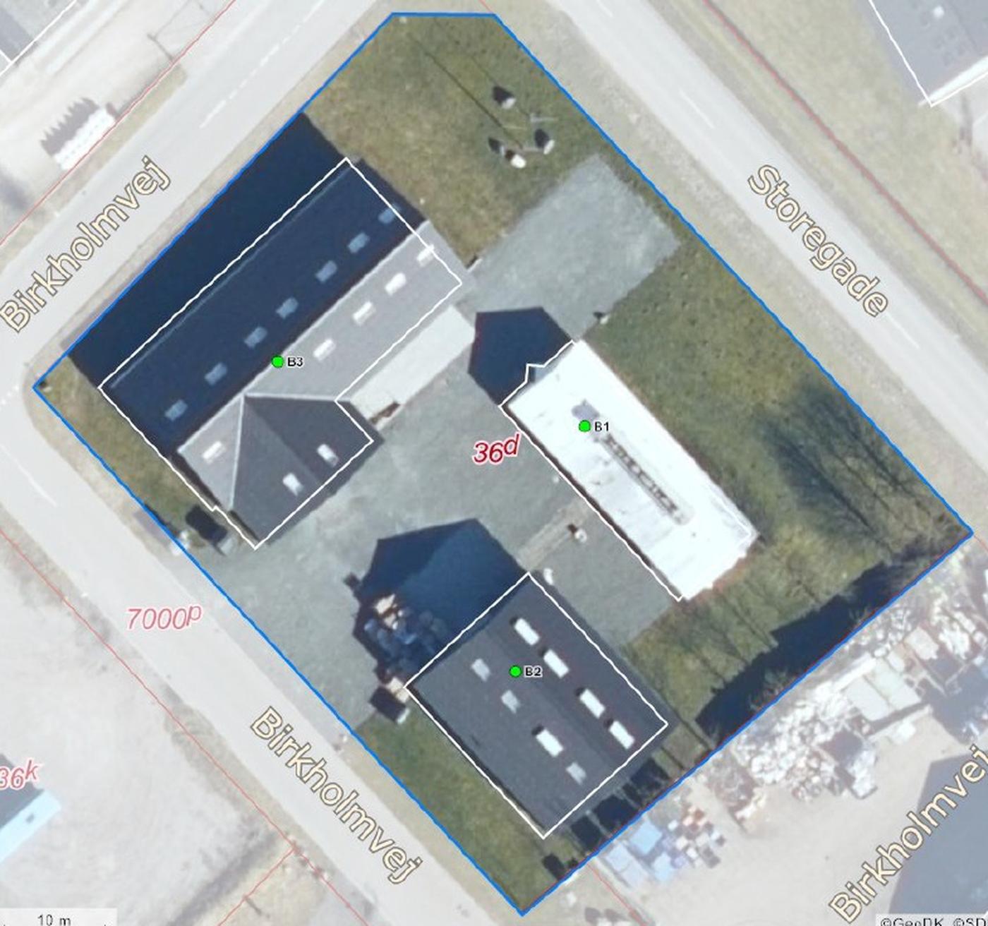 Bygningen udgør del af ejendom med en samlet bebyggelse på i alt ca. 1.124 m² og et grundareal på 4.271 m².