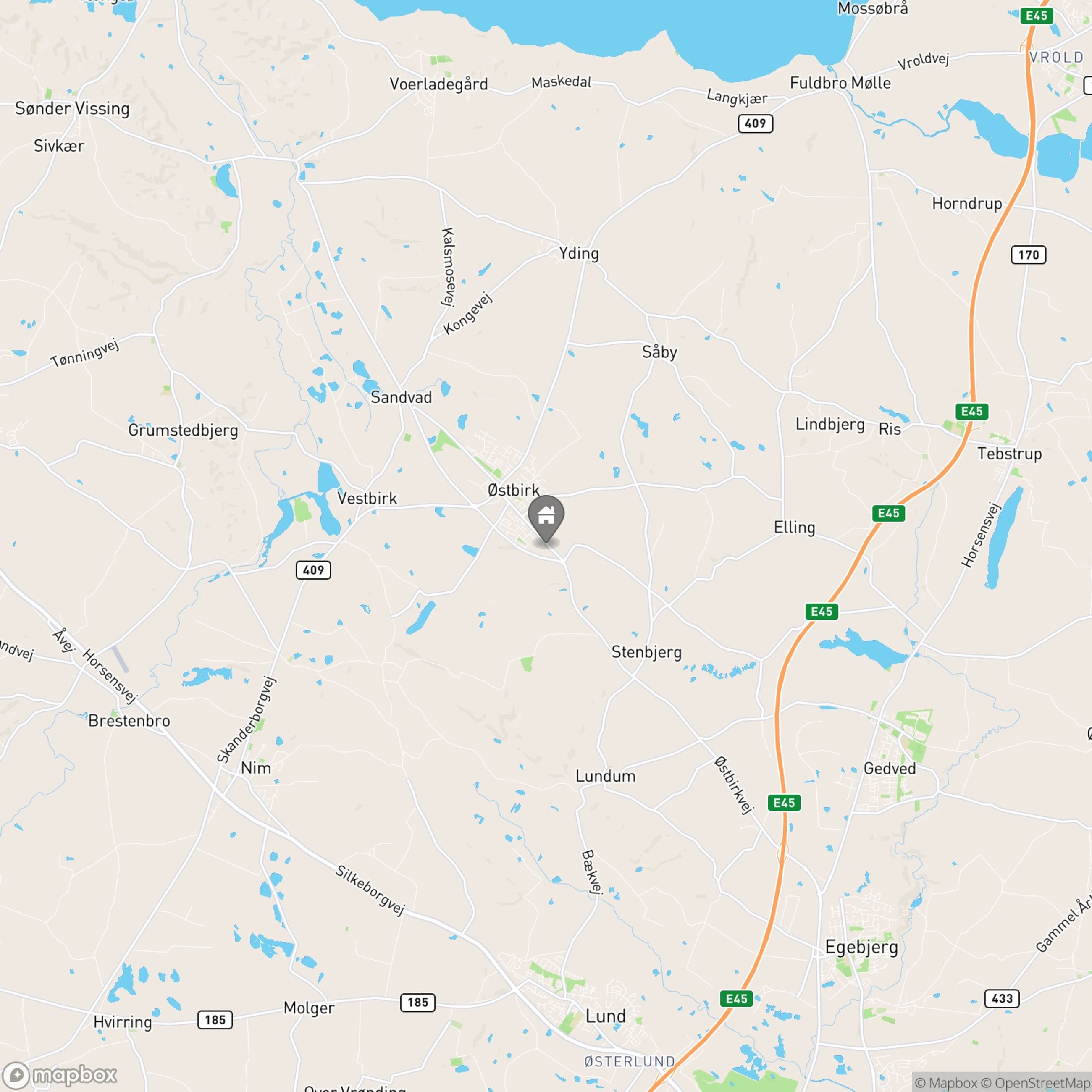 Beliggende i erhvervsområde med god synlighed ved indfaldsvej til Østbirk. Der er kun ca. 6 km til motorvejstilslutning Horsens Nord og ca. 13 km til Horsens midtby.