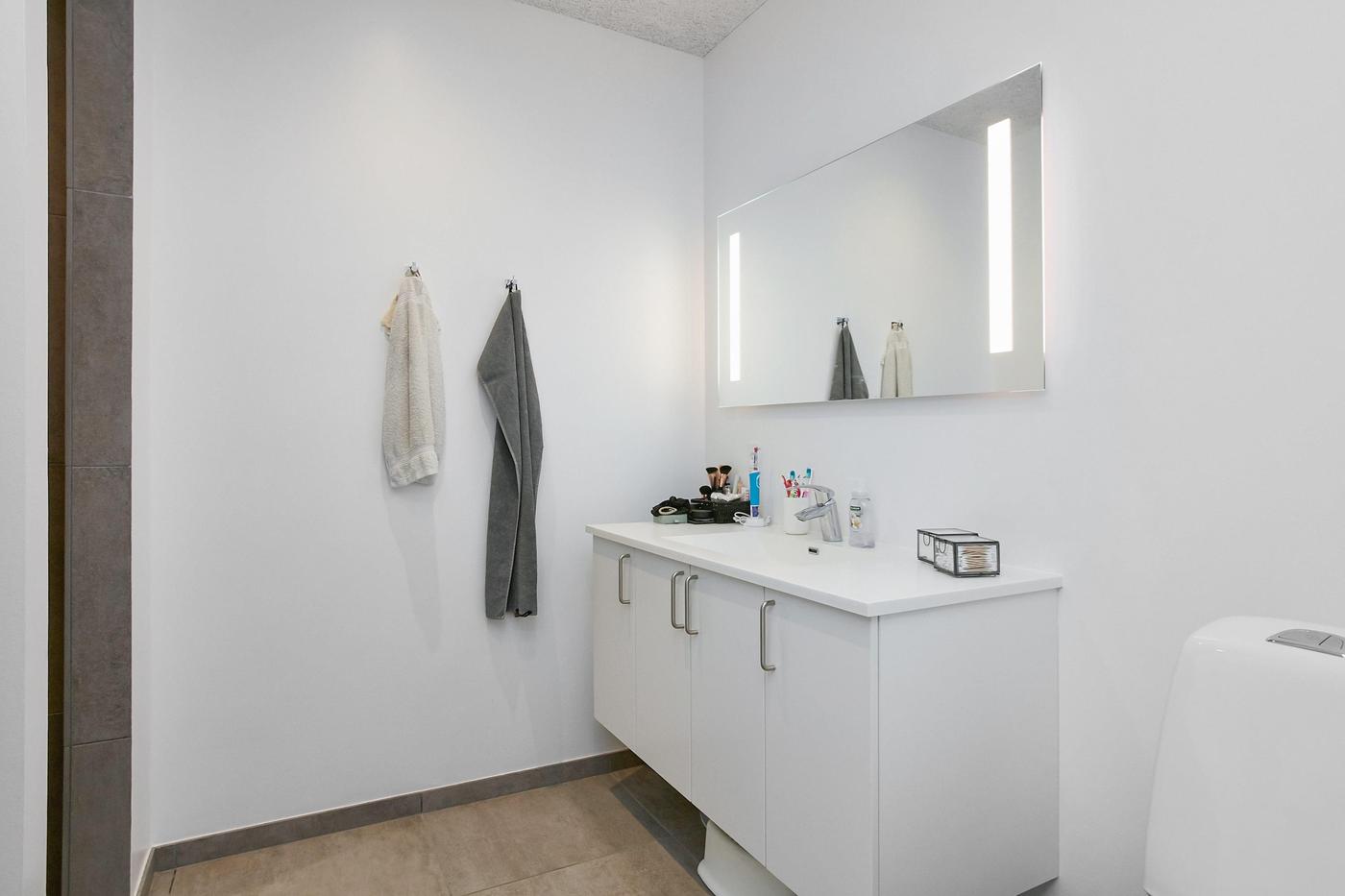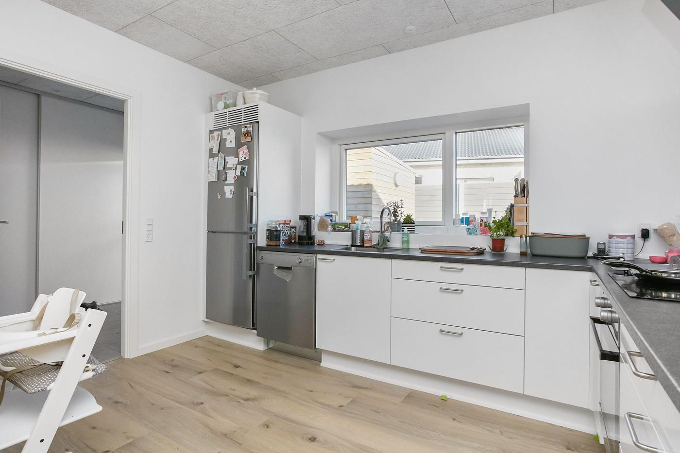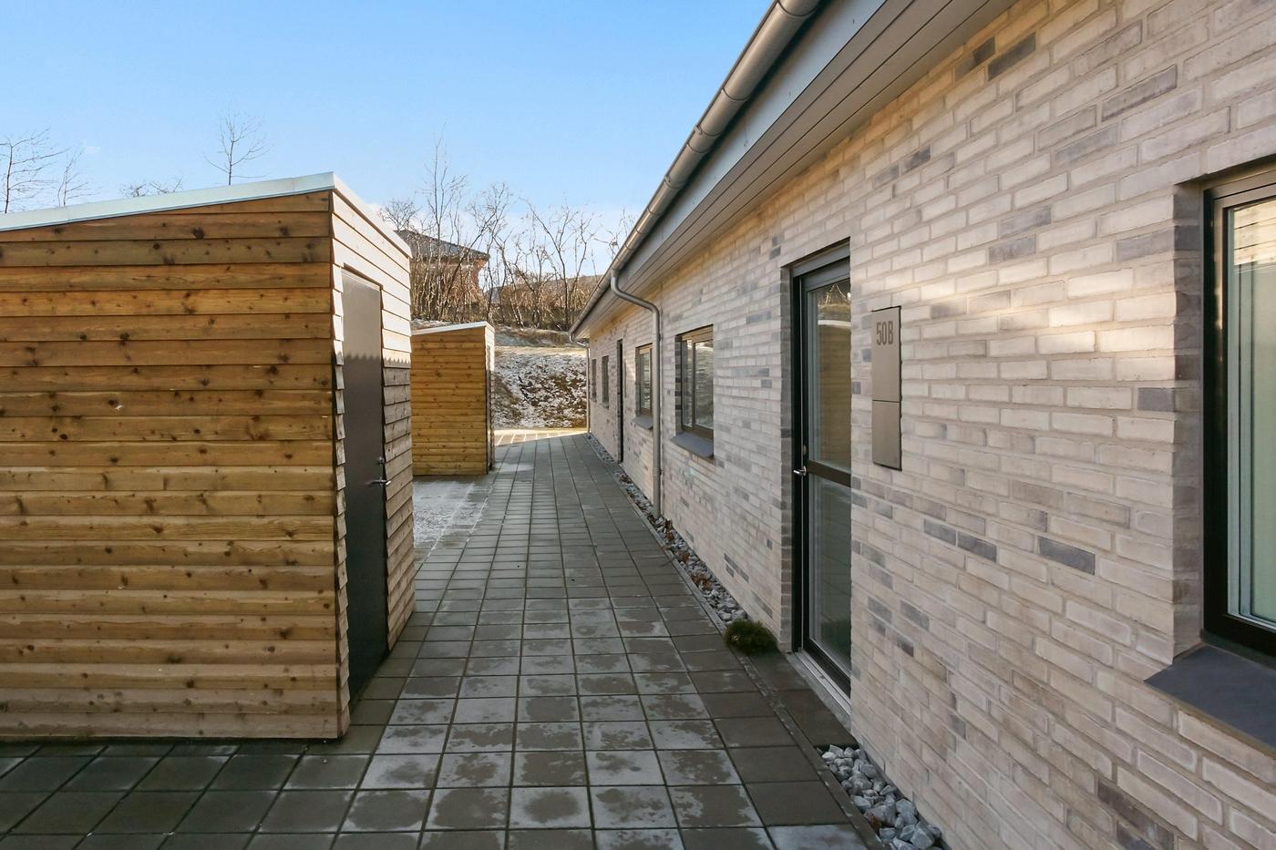 Hver bolig indeholder entre/gangareal, stort køkken/alrum i åbent plan med stue og 2 værelser. Der er klinkegulve i gang og badeværelse og Pergo gulv i de øvrige rum. Der er gulvvarme i alle rum. HTH køkkener. Hver bolig har egen lille have med terrasse, ligesom der er redskabsrum til hver bolig.