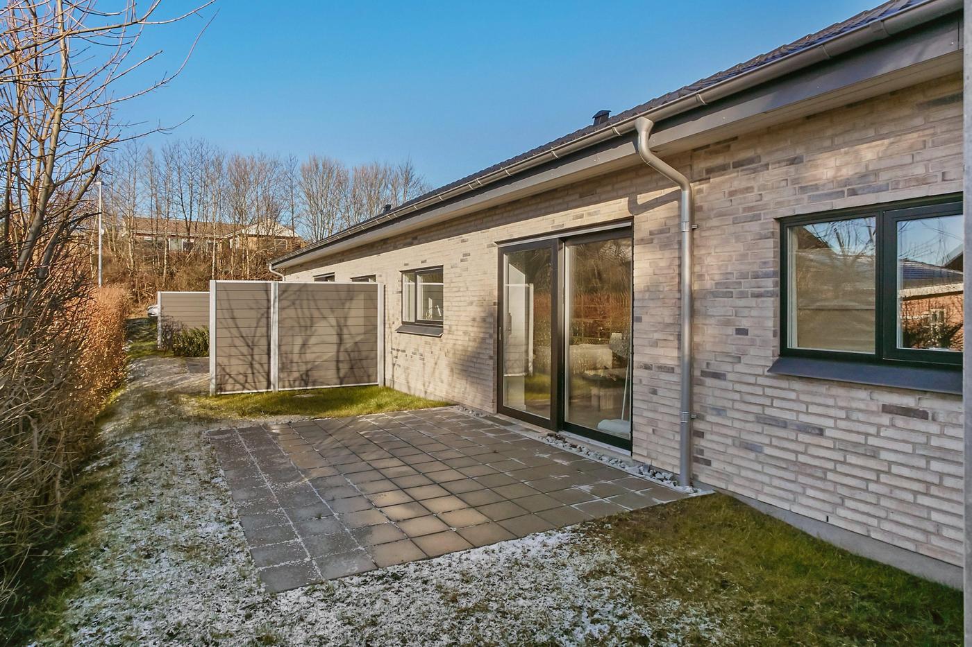 Husene er opført i mursten og med sort tegltag. Der er 3-lags thermovinduer og terrassedøre. Troltekt lofter.