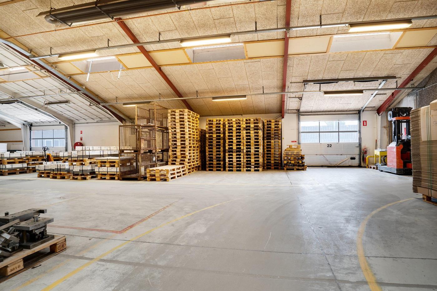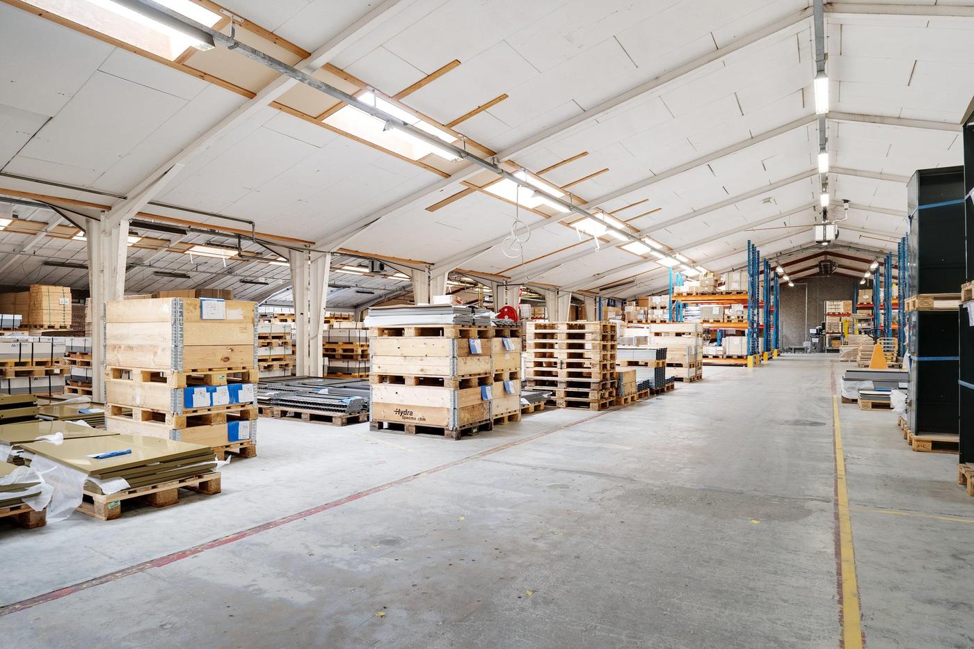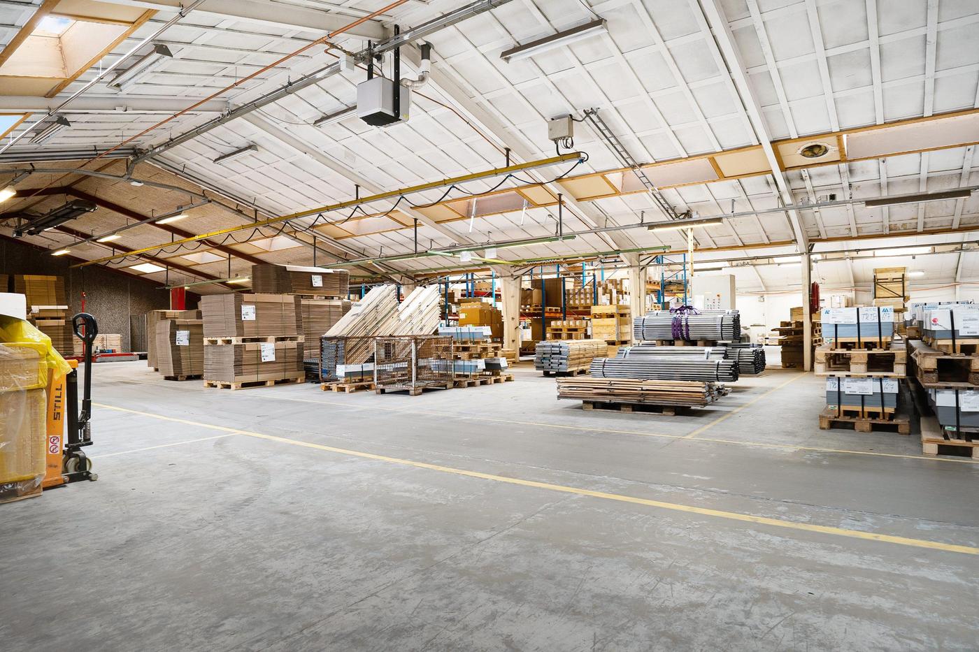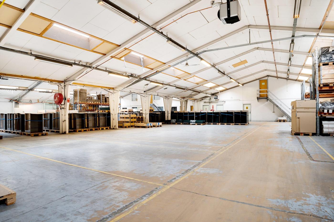 Lagerområdet kan være på op til 1.000 m² og er beliggende i ejendommens bygning 1, der er en del af en større produktionsejendom. Det er et relativt åbent område, som efter aftale med udlejer kan lukkes mere eller mindre af. Loftshøjden er blandet fra lav til høj, da loftet er opført i V-konstruktion. Fra lagerområdet er der relativ let adgang til aflæsningsramperne.