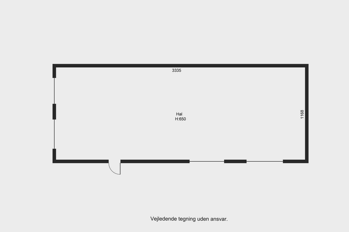 Lager- og halarealet er direkte tilgængeligt fra kontordelen og opdelt i tre sektioner. Den midterste sektion er opvarmet med varmeblæser, mens de to øvrige sektioner er uopvarmede. Hallen har særdeles gode adgangsforhold med to store porte i niveau - én i hver ende af bygningen - og loftshøjde på ca. 6,5 meter.
