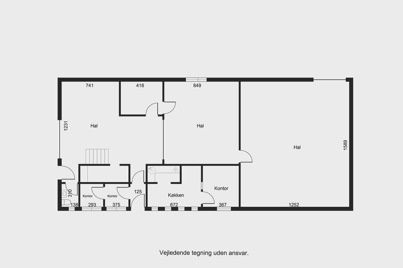 Ejendommen byder på en præsentabel hovedindgang med direkte adgang fra parkeringsareal. Indgangspartiet fremstår pænt og indbydende med bryggers. Herfra er der adgang til separat et kontorrum samt et fælles kontor- og spiseareal og tilhørende køkkenfaciliteter.