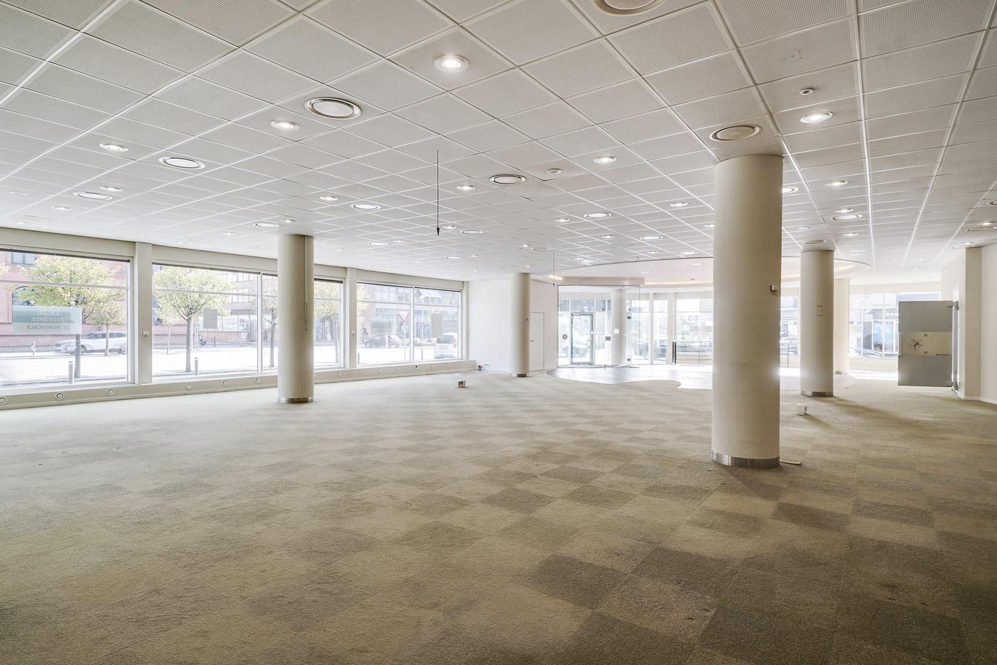 Lejemålet består af ca. 694 m² butik i stueplan. Derudover er det muligt at leje ca. 523 m² kontor på 1. sal. (Se sagsnr. 7161R) Lejemålet er fleksibelt at indrette, da ingen vægge er bærende, idet ejendommen er søjlebåren.