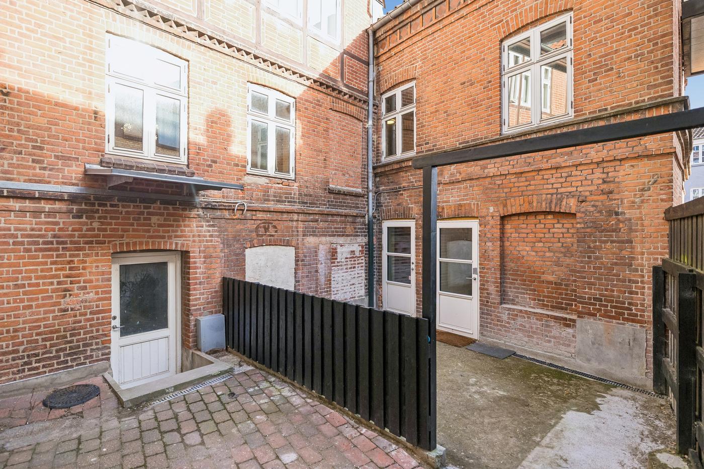 Udenomsarealer: Der er en mindre baggård til ejendommen med parkeringsmuligheder.