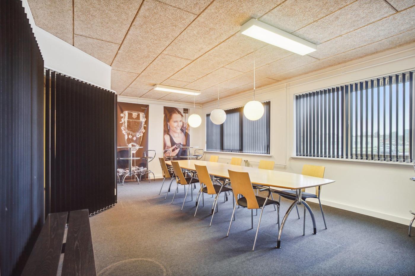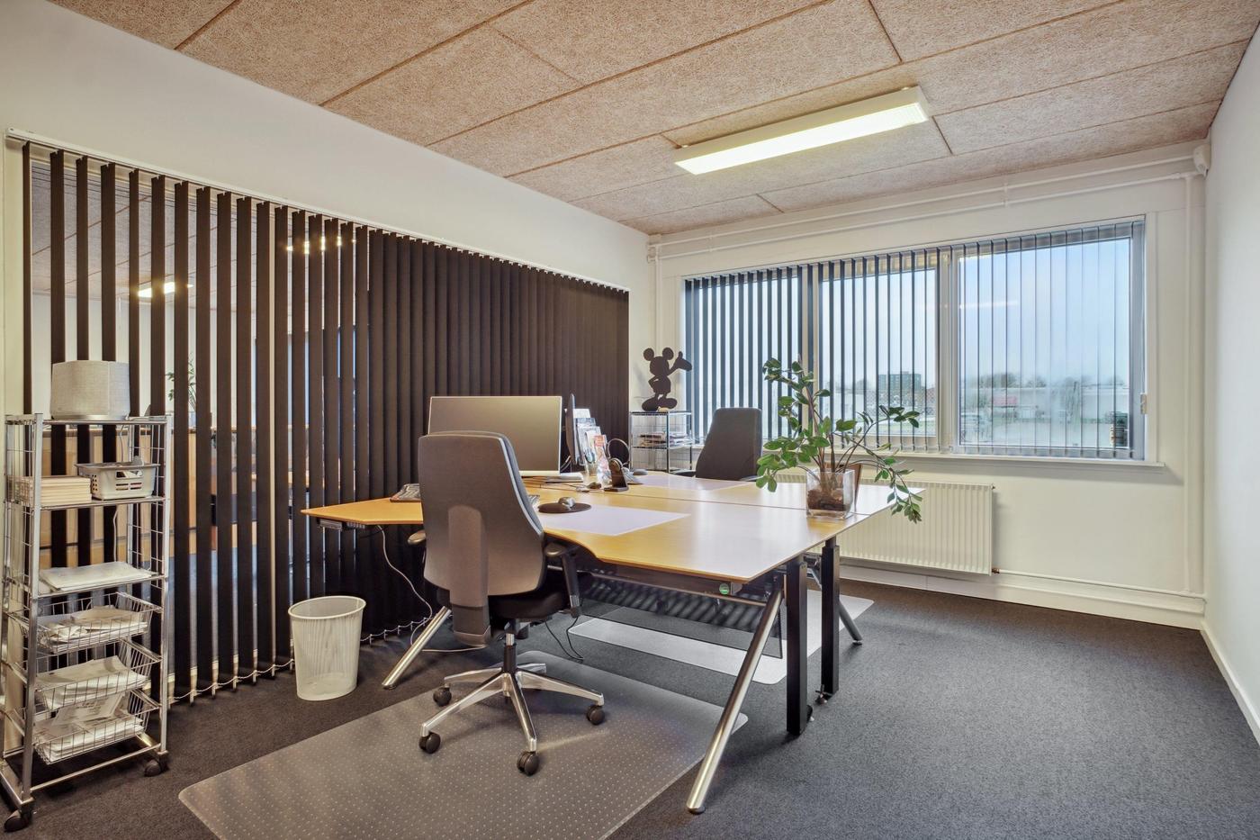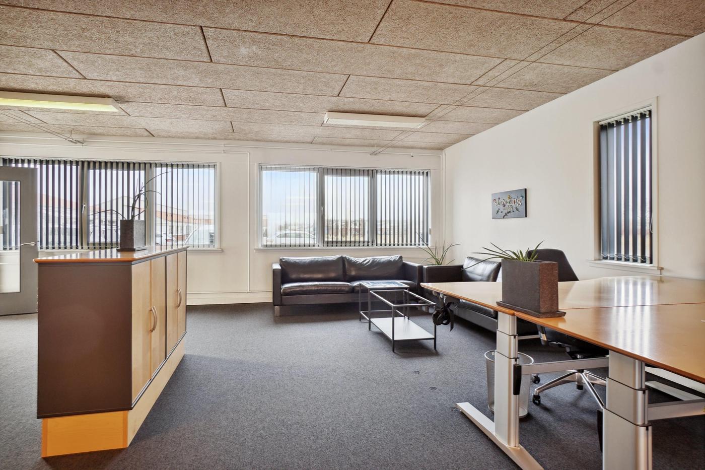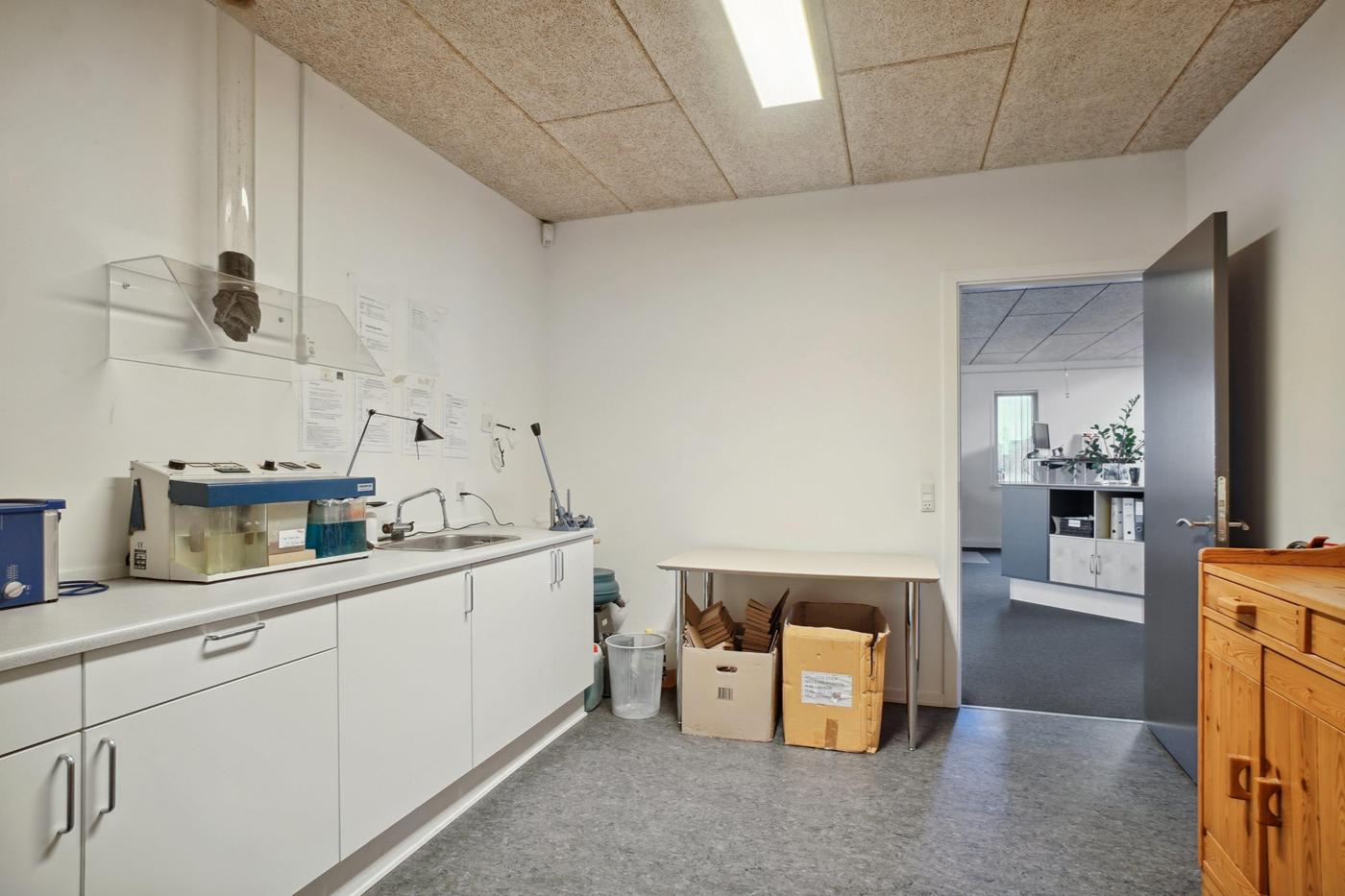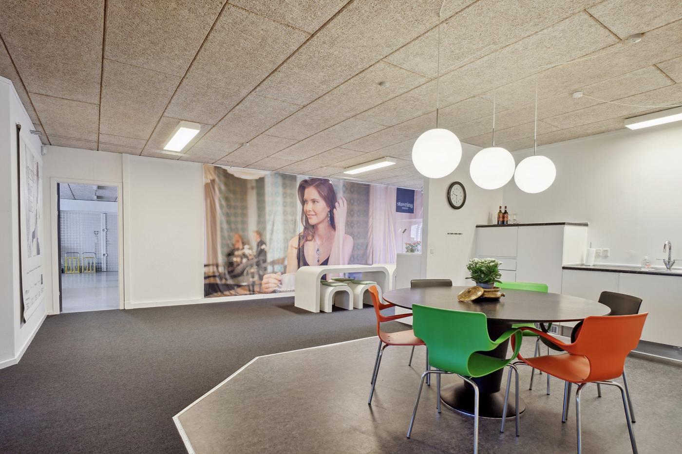 Ejendommen er indrettet med et åbent kontorlandskab på ca. 100 m², 4 kontorer/mødelokaler, samt en fin frokoststue med dertilhørende tekøkken. Fra administrationsdelen er der direkte adgang til lager/showrrom, som har et højt sikringsniveau, da sælger har drevet smykkeforretning fra ejendommen. Lageret er forsynet med troldtektlofter og linoleumsgulve, hvilket giver et behageligt arbejdsmiljø for lagermedarbejderne. Der er gitter for vinduerne i lagerdelen, og adgang udefra via mindre port.