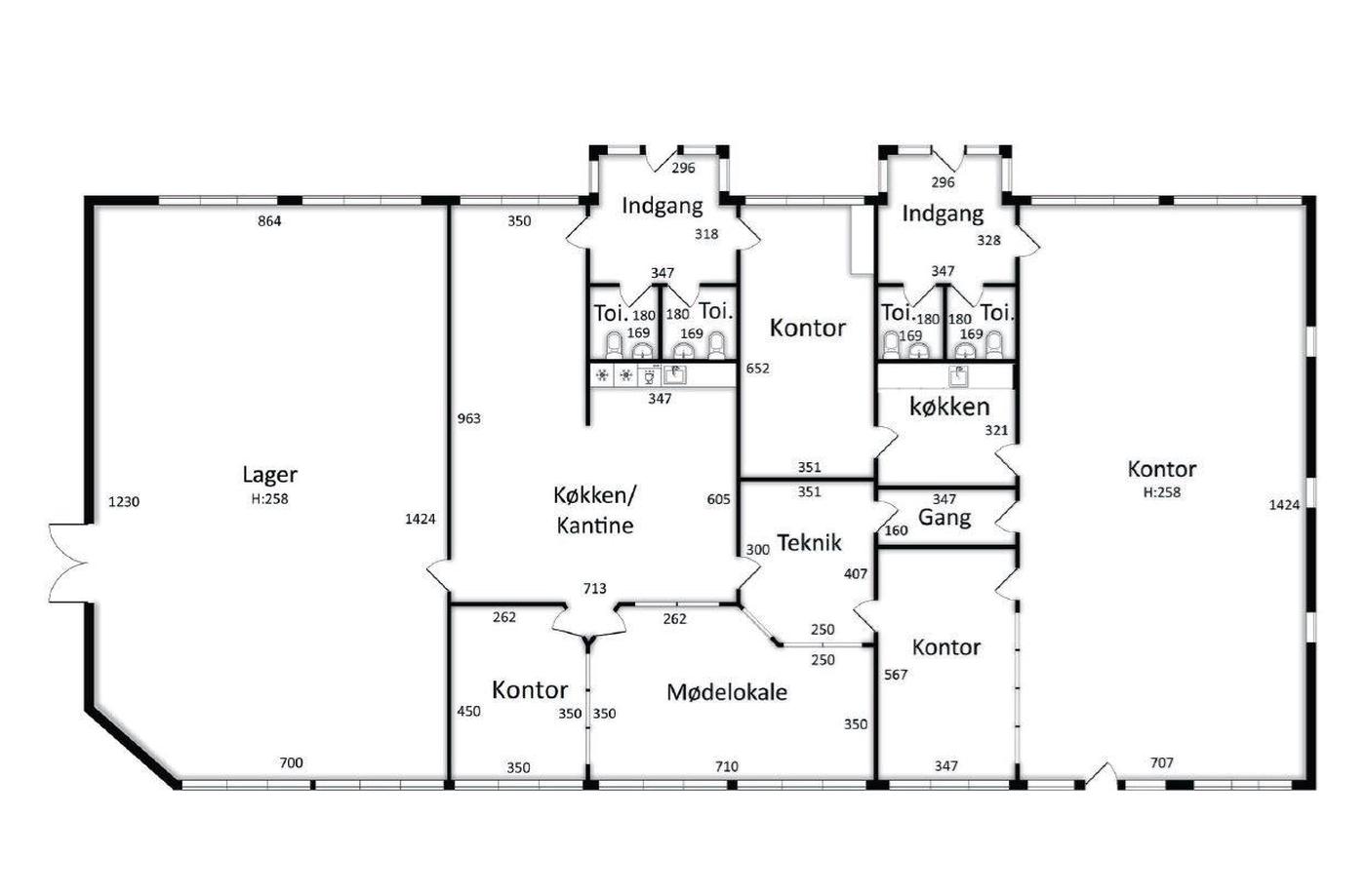 Ejendommen er desuden indrettet med 2 vindfang/indgangspartier, hvilket gør det muligt at opdele den i 2 lejemål, såfremt en køber skal bruge en del af ejendommen selv.