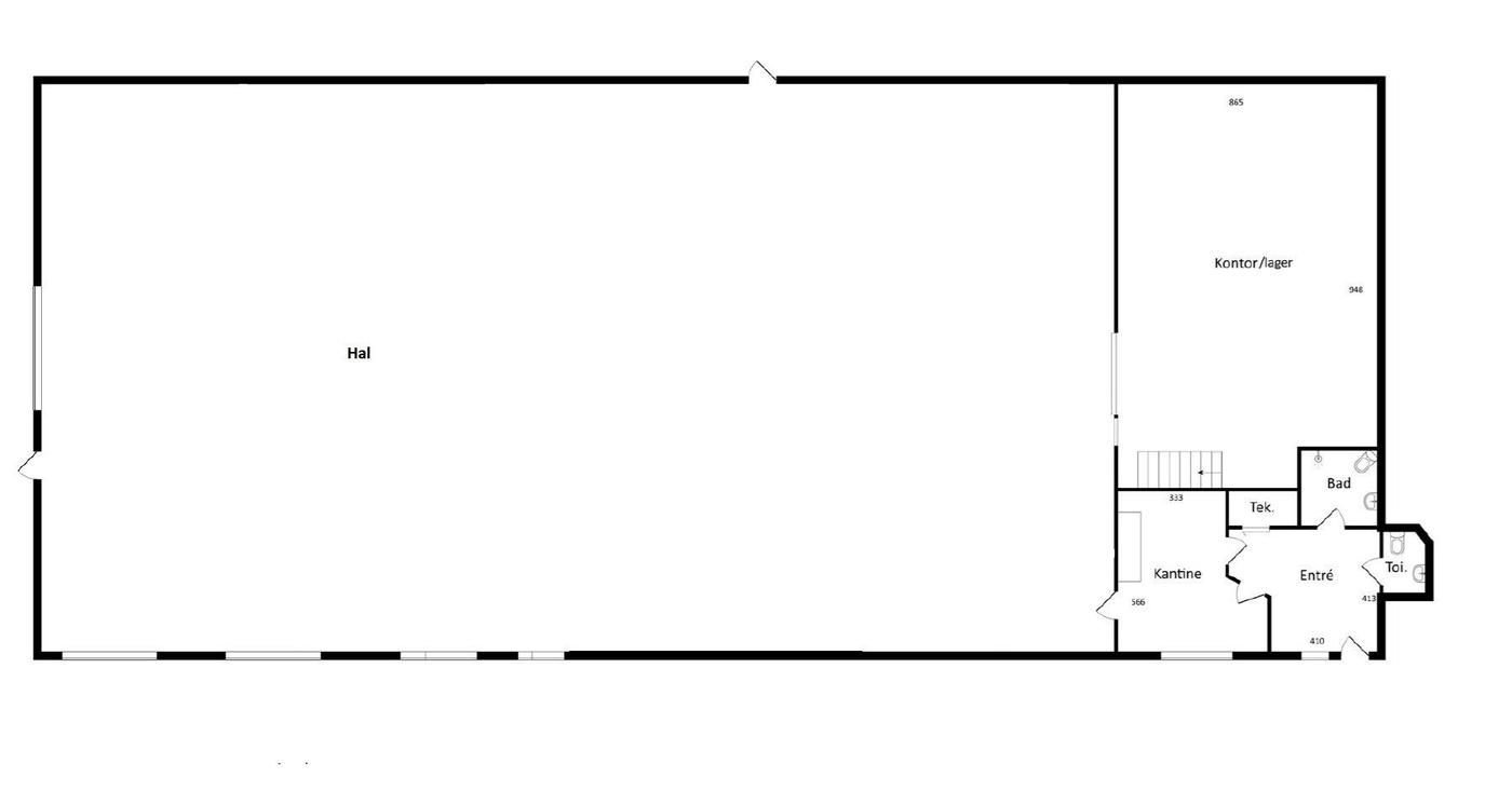 Indretning: Lejemålet er indrettet med velfærdsområde med 2 toiletter, hvoraf det ene har bad, og tekøkken/frokostrum. Hallen er pt. indrettet med rum til lager, showroom og kontorer. Alle rummene er lavet med letvægge, og kan tages ned såfremt man ønsker en regulær hal. Lejemålet er oplagt at benytte til mindre produktion, lager eller lignende formål.