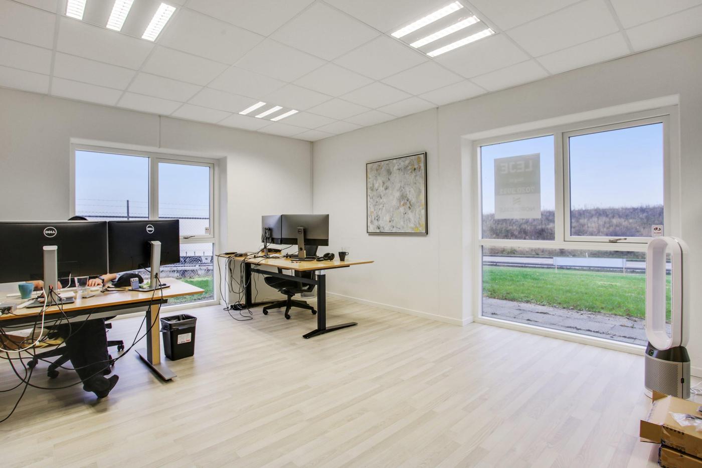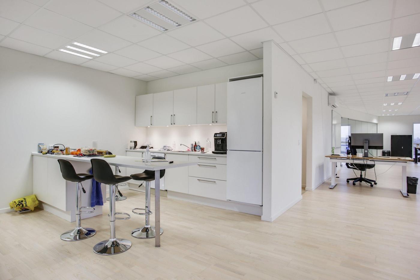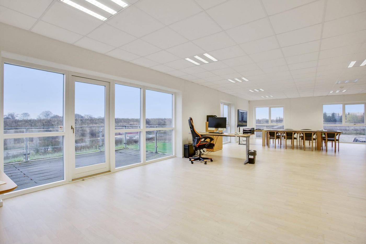 Indretning: Lejemålet er i to plan. Stueetagen er indrettet med en entre hvorfra der er adgang til det store kontorlokale. Herudover er der to kontorer med glasvægge, et tekøkken, et kopirum/arkivrum og et toilet med bruseniche. 1. sal er indrettet med stort kontorlokale med tekøkken, depotrum, toilet og møderum med glasvæg.