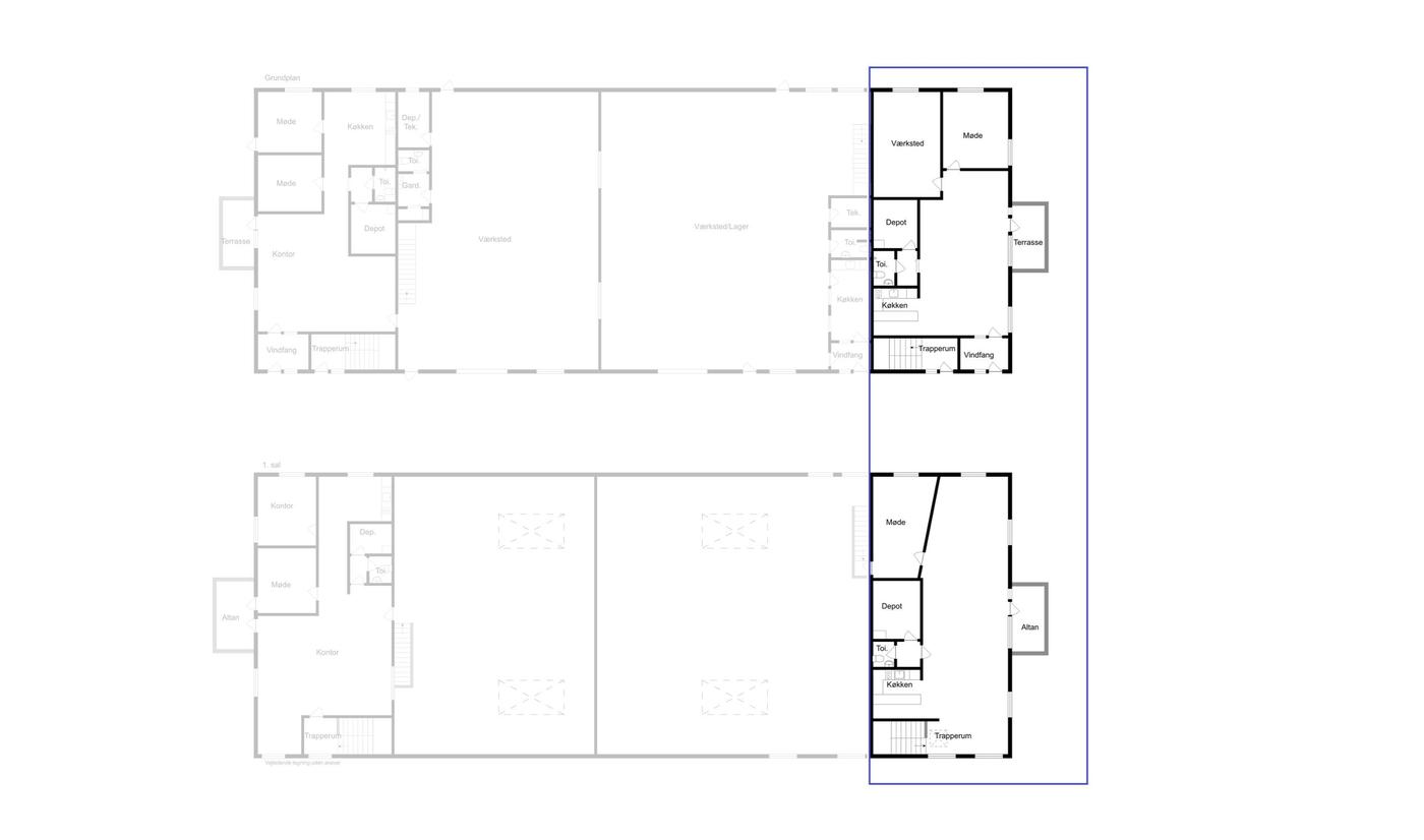 Lejemålet kan opdeles i de to etager, efter nærmere aftale.
