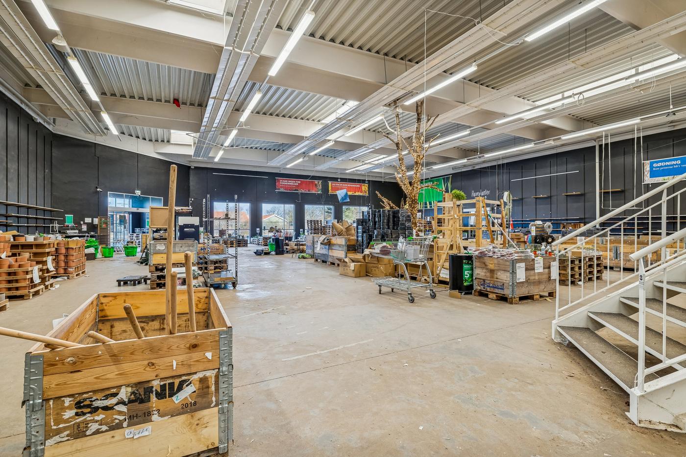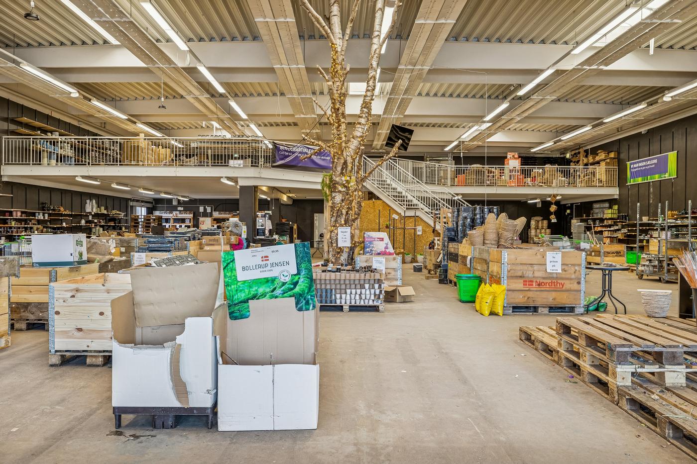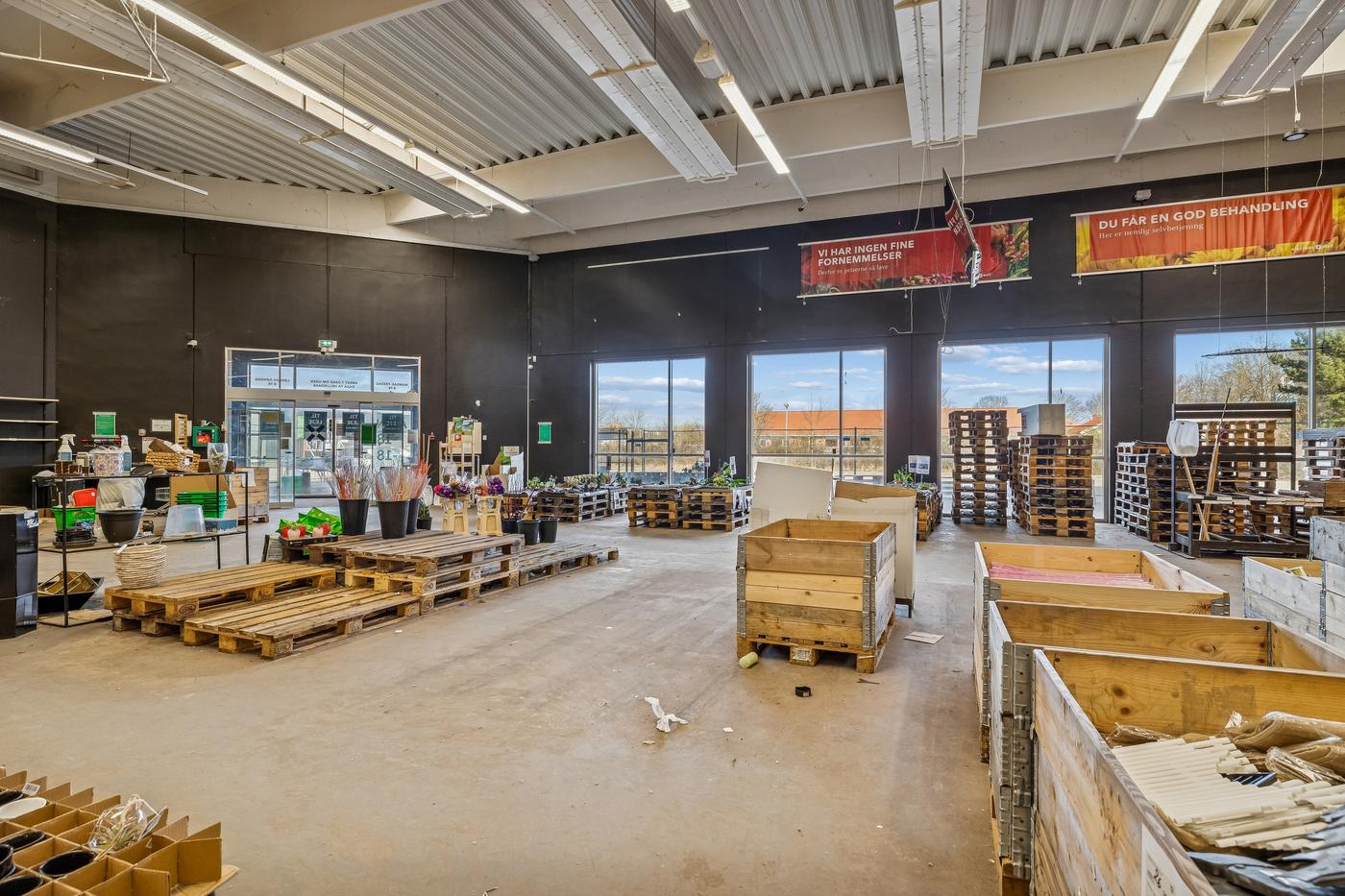 Traditionel boxbutik opført i betonelementer og med fladt tag med tagpap. Der er mange store ovenlysvinduer, der giver et dejligt lys ned i salgsarealet. Gulve i beton p.t. uden belægning, idet lejemålet senest har været anvendt til Billig Blomster. Indrettet med regulært salgsareal med vindfang og facadevinduer mod parkerings-pladsen. En større del af salgsarealet har et indskudt åbent dæk med ligeløbstrappe fra butiksgulvet. Endvidere er der elevator. Der er lager på to plan, hvor elevatoren ligeledes anvendes. Der er aluhejseport til lageret i stueplan. Der er kundetoilet i forbindelse med butiksarealet. På 1. salen er der tre kontorer, frokostrum og personaletoilet.