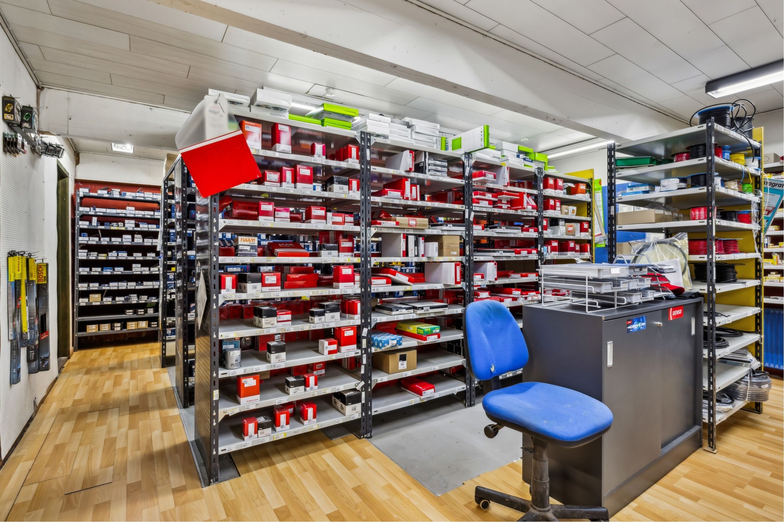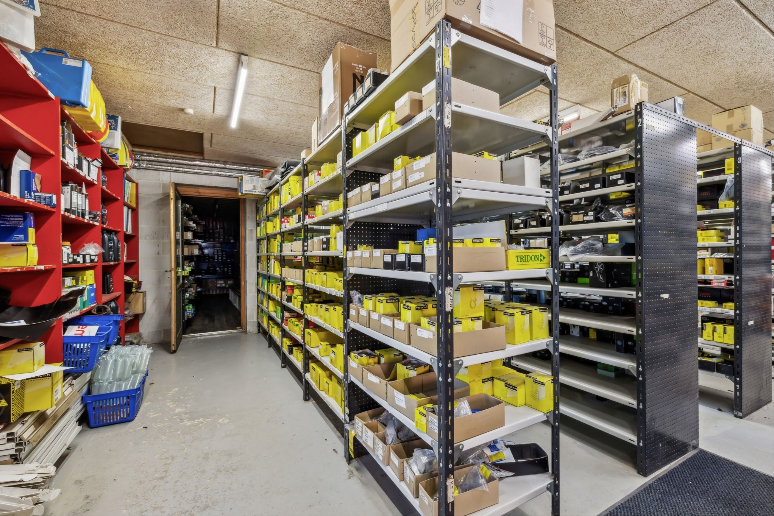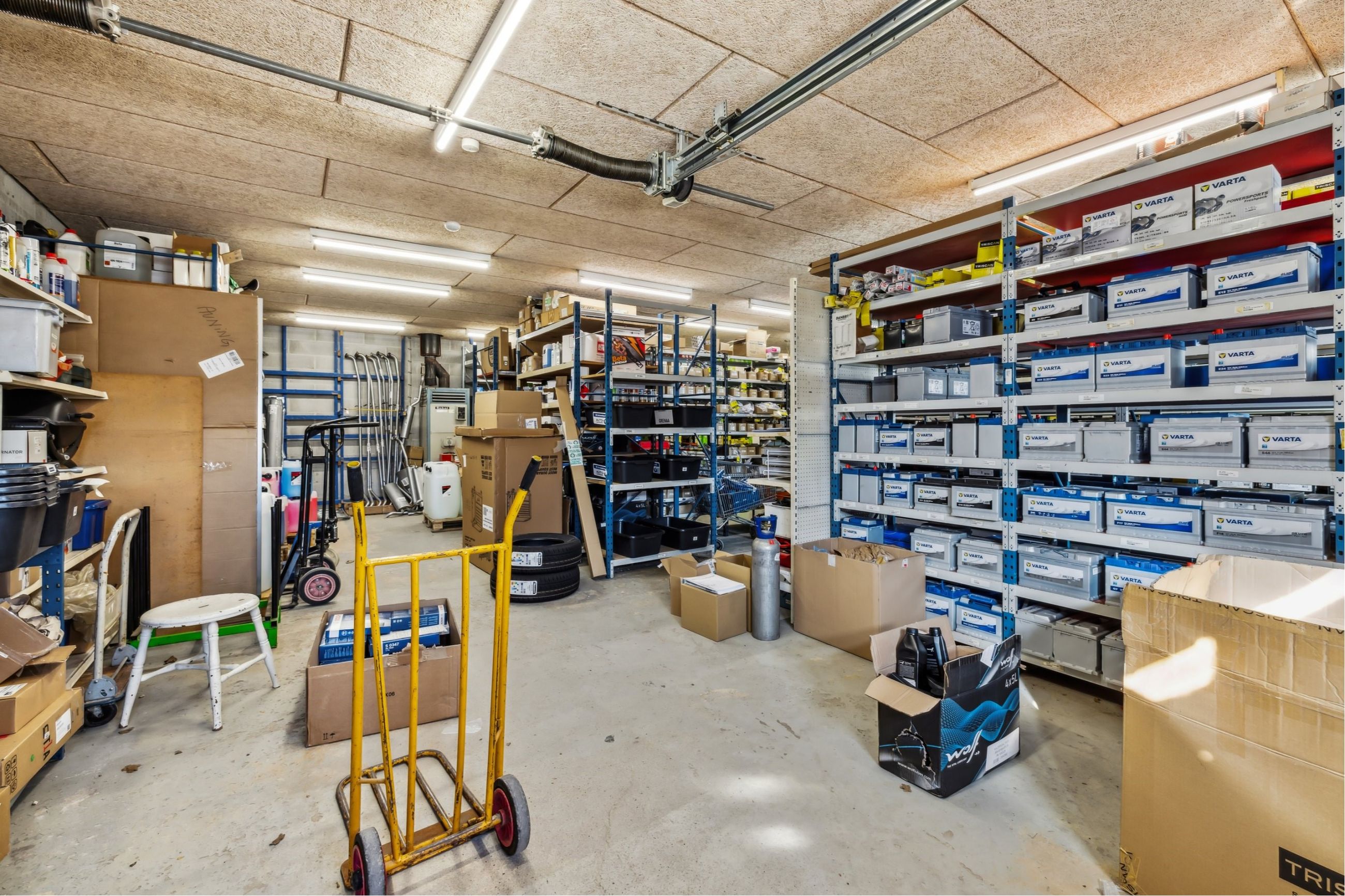 Velkommen til denne ejendom i hjertet af Auning, hvor mulighederne er mange og potentialet stort. Denne ejendom tilbyder både erhvervslokaler og en selvstændig bolig. Erhvervsdelen er på 356 m2 og indrettet som butik med tilhørende lagerfaciliteter. Grunden er på i alt 3.487 m2. Indretningen fordeler sig med butik og et fint og opvarmet lager med port adgang. Bygningen er opført i 1976 og 1983. Derudover er der en container til dæklager og 2 til alm lager samt en garage. Facaden er opført i mursten og med pap på taget. Den nedgravede olietank bliver fjernet. Der er fjernvarme.