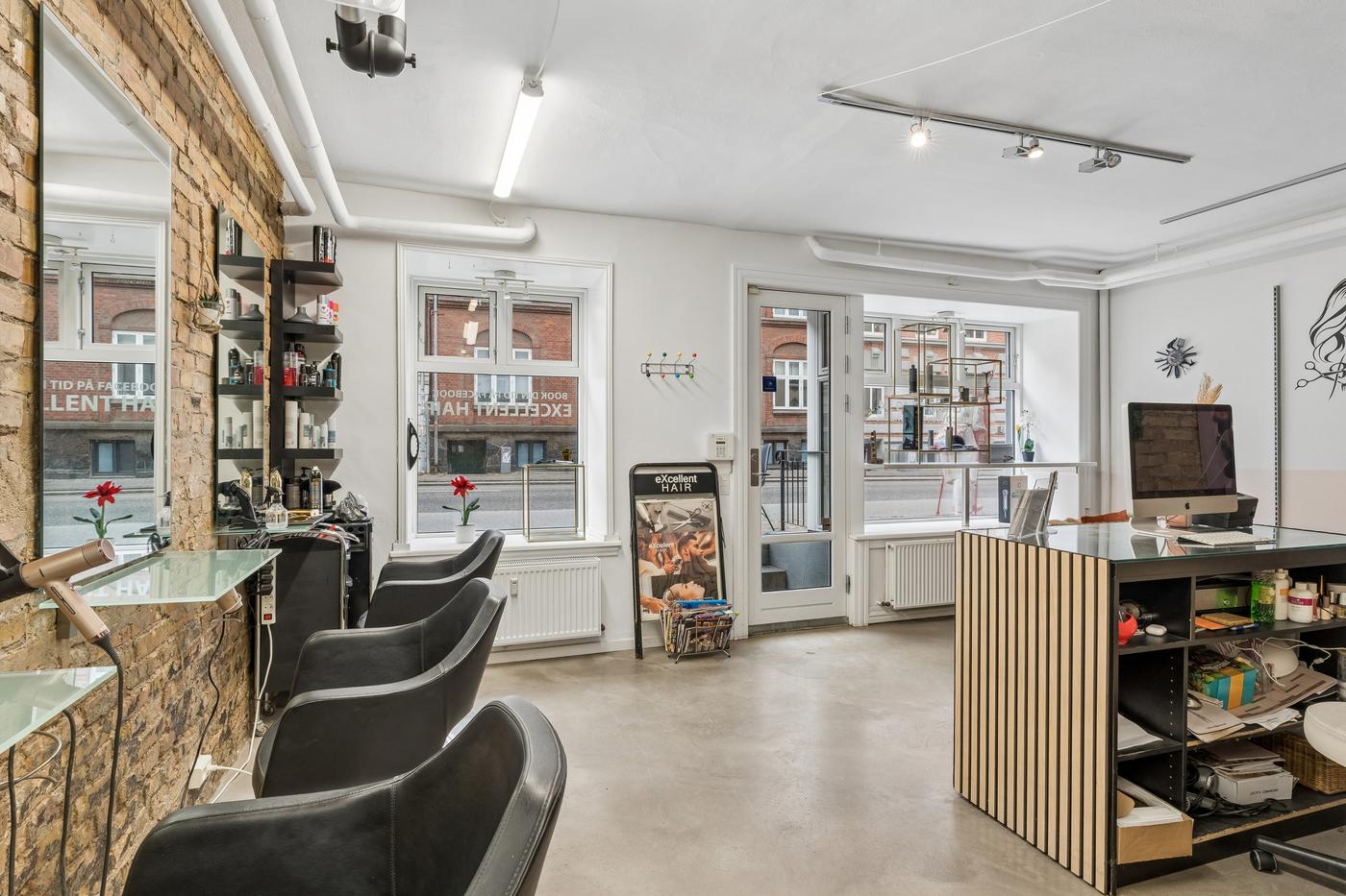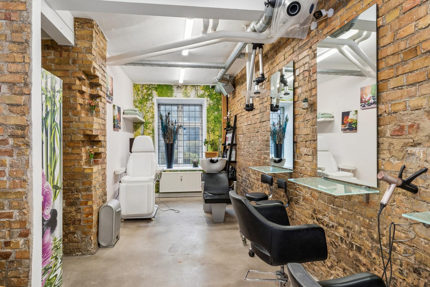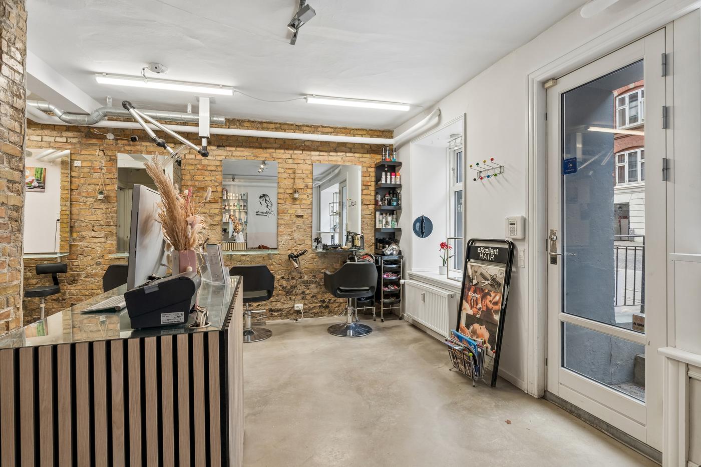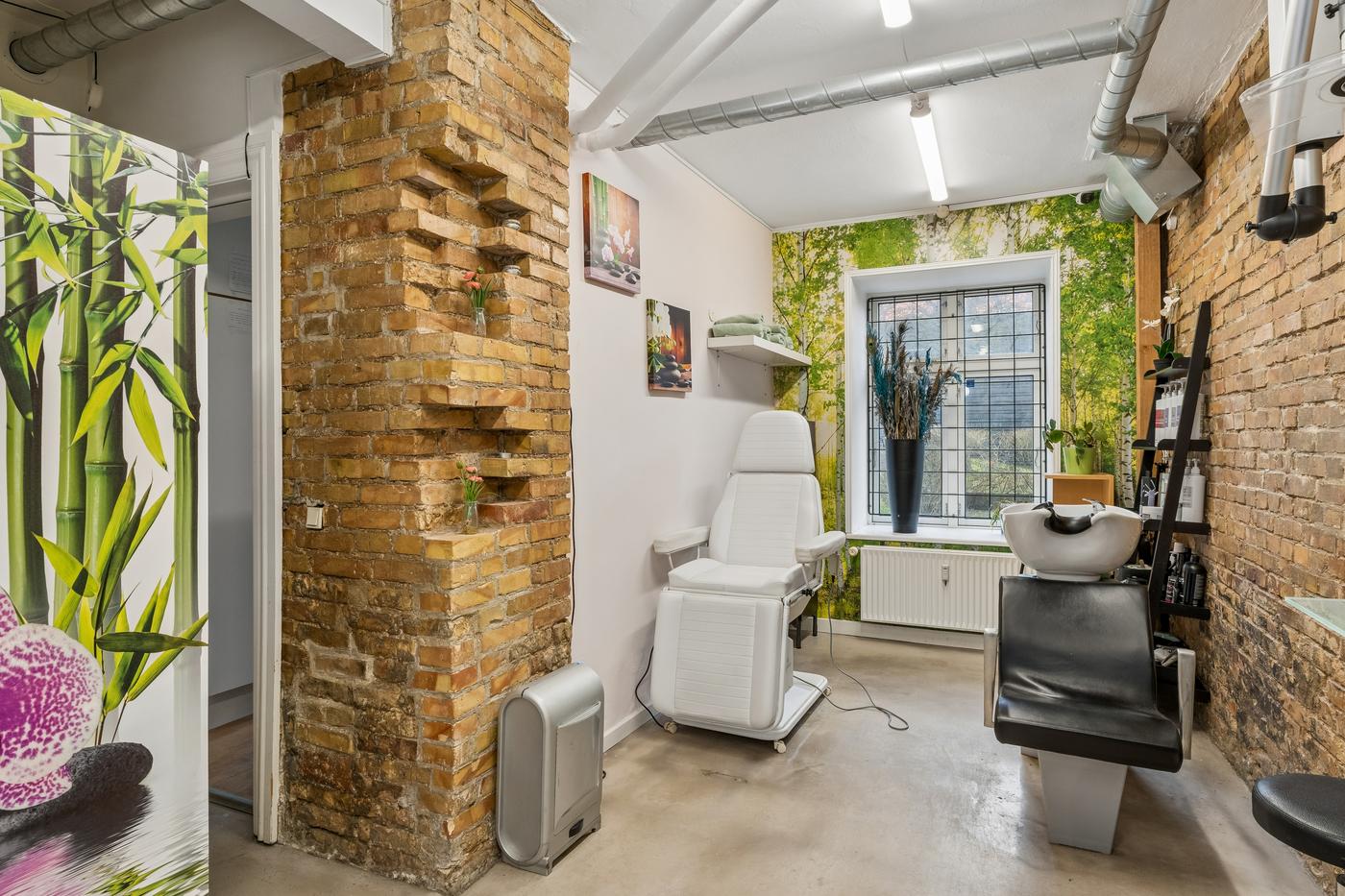 Lokalet er velegnet til frisør, barber eller andre skønhedsrelaterede behandlinger, og installationerne giver en ny lejer mulighed for hurtigt at etablere sig og påbegynde drift uden større investeringer.