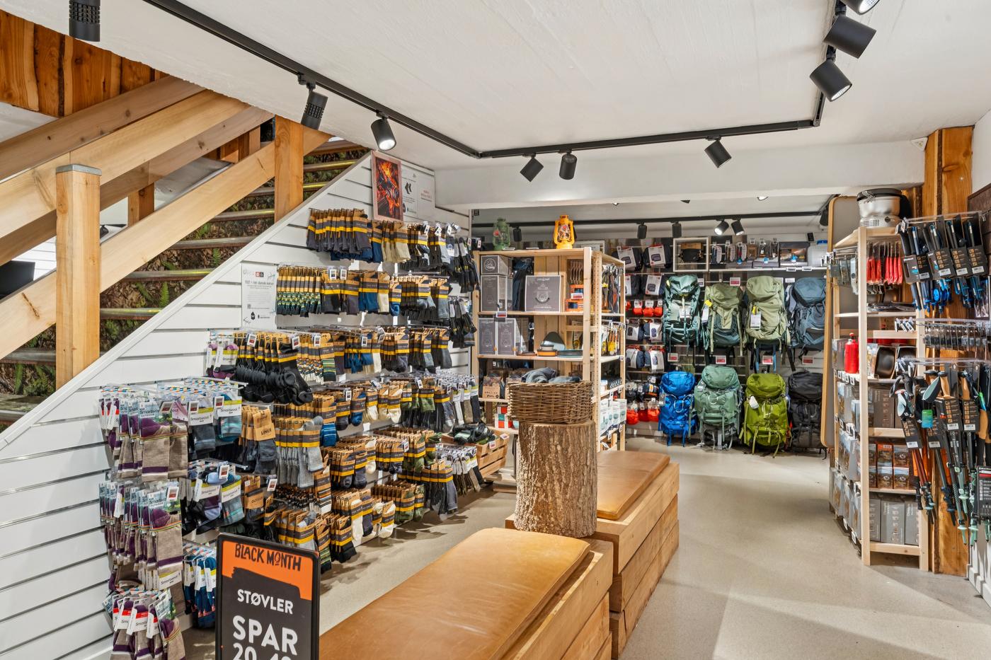 Ejerlejligheder er indrettet med stort regulært butikslokale i stueetagen, trappe ned til højloftet kælder hvor der ligeledes er regulære salgsarealer. Derudover er der i kælder mindre kontor, toilet/thekøkken samt lagerfaciliteter. Ialt 149 m² i stuen og 236 m² i kælder.