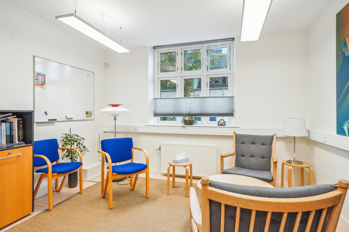 Ejerlejligheden indeholder reception med venteværelse, 5 mødelokaler/samtalerum, 2 badeværelser/toilet og fordelingsgang. Desuden hører der til ejerlejligheden 2 parkeringspladser samt tinglyst brugsret til have areal.