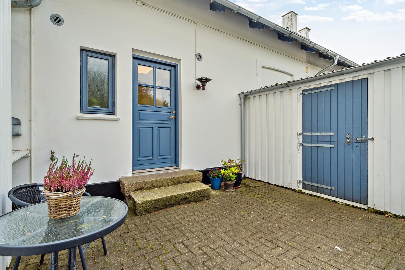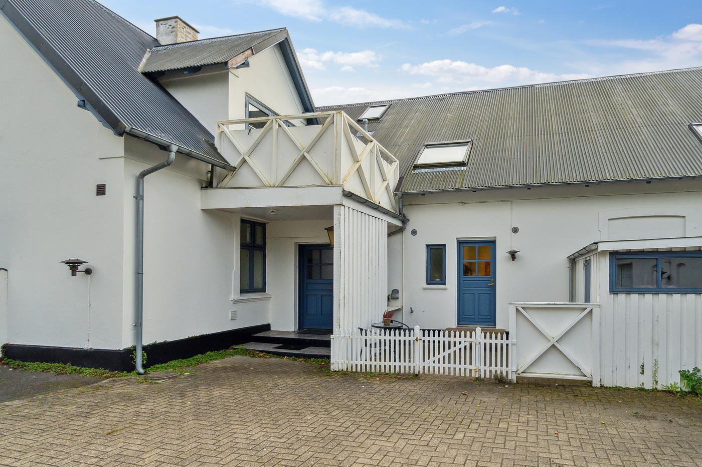 Ejerlejligheden er beliggende i charmerende ejendom, og fremstår særdeles velvedligeholdt med tag belagt med sorte metalplader, hvidpudset facade og vinduer i blåmalede trærammer med termoglas. Ejendommen er opdelt i tre ejerlejligheder og blev oprindeligt opført i 1906 med ombygninger i 2001.