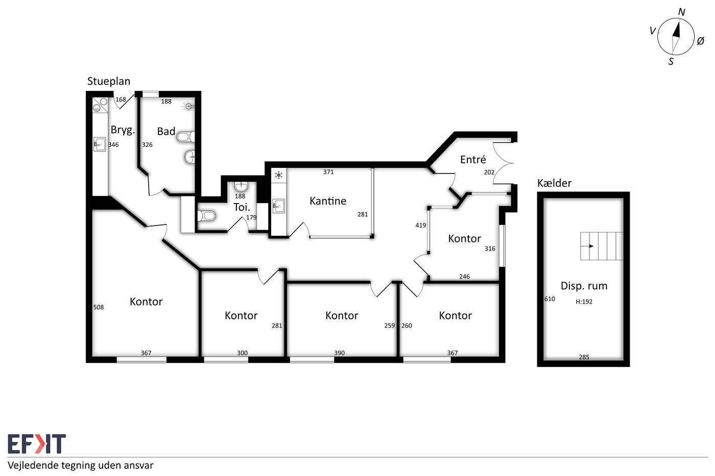 Lokalerne (ejerlejlighed nr. 1) er beliggende i stueplan med adgang via hovedindgangen fra Bygaden og gården. Ejerlejligheden fremstår i rigtig pæn stand med lyse trægulve, og klinker i køkken og badeværelse/toilet samt lyse lofter og vægge hvilket skaber en indbydende og lys atmosfære.