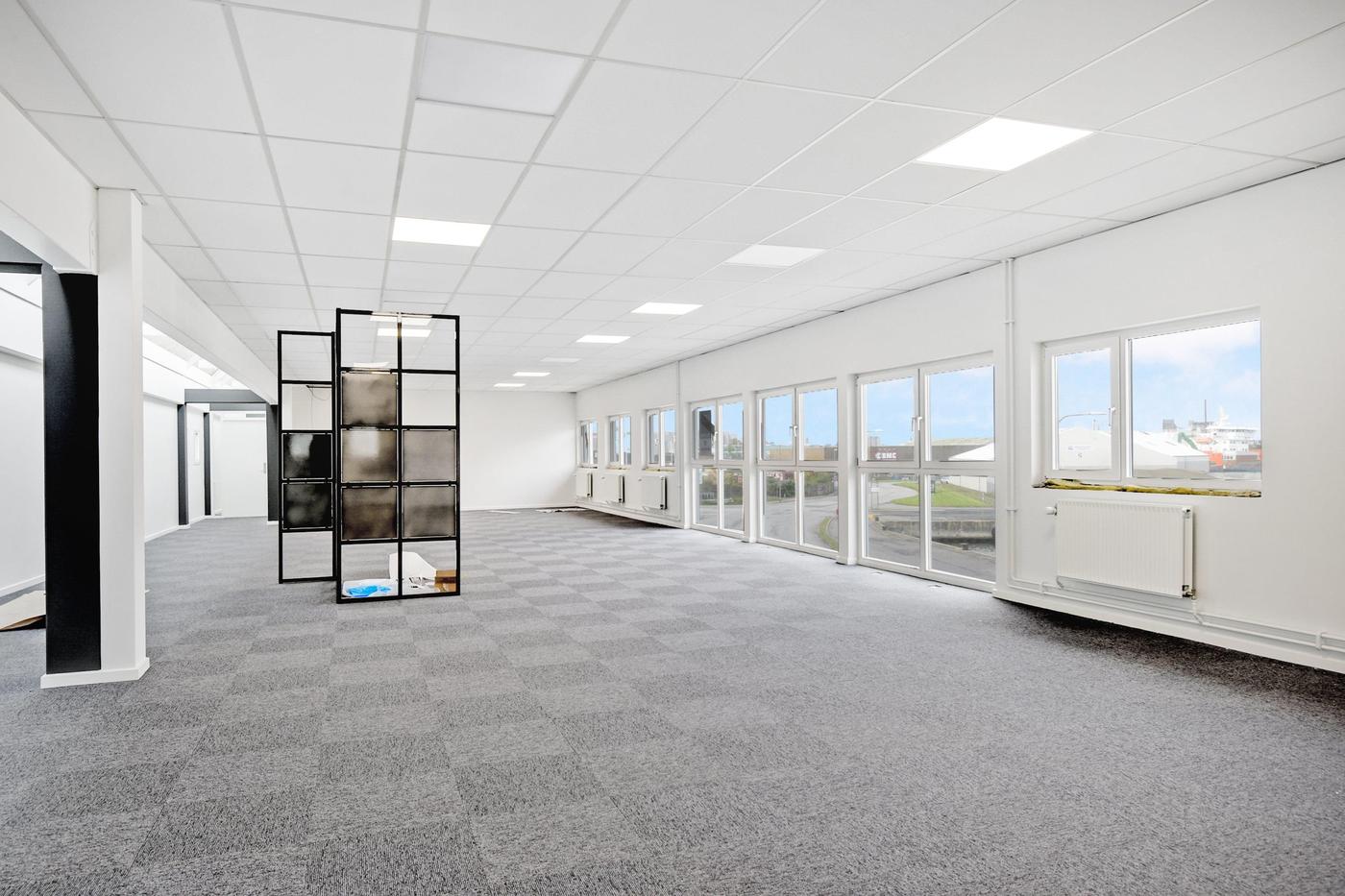 Lejemålet er på 188 m² (brutto areal inklusiv fællesarealer) og beliggende i stueplan med udsigt over fjorden og de daglige aktiviteter på oliehavnen.