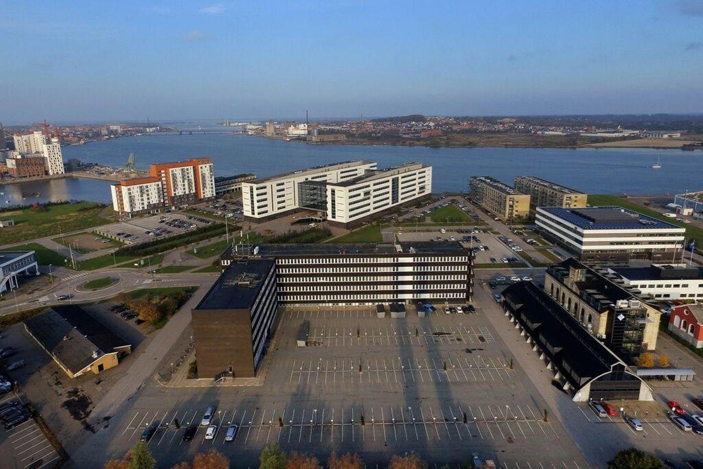 Klik her for at se dronefilm af ejendommen Kontorlejemål beliggende i flot og velindrettet multibrugerejendom i det nye, attraktive erhvervs- og boligområde ved Havnen udlejes. Ejendommen er centralt beliggende i Aalborg med få minutters kørsel fra såvel motorvejsnettet som Aalborg City og har god adgang til offentlige transportmidler. Ejendommen er beliggende i et af Aalborgs mest spændende udviklingsområder, hvor tidligere industriområder omdannes til eksklusive boligarealer og flotte kontordomiciler. I den umiddelbare nærhed ses KMD, Alfa Laval og SKATs store domiciler samt Østre Havn Strandpark.