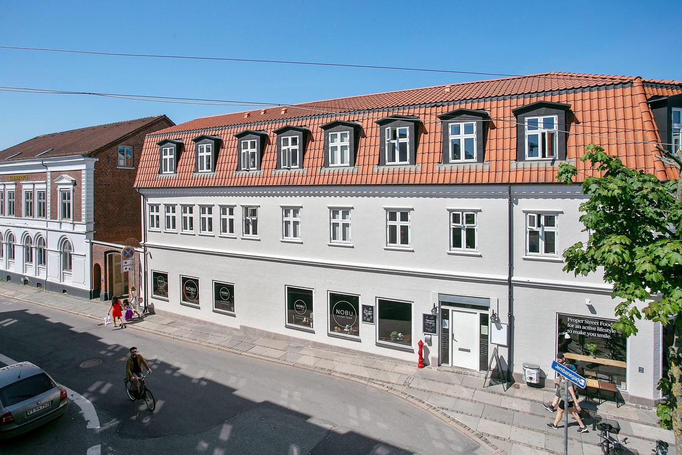 Synligheden er derfor rigtig god, og restauranten har en markant facade ud til Jernbanegade. Lejemålet ligger i en markant og nyrenoveret ejendom med flotte detaljer. Lejemålet gennemgik i 2010 en større renovering med bla. nye gulve, nye toiletter, etablering af bar samt sandblæsning og maling af facade og vinduer.