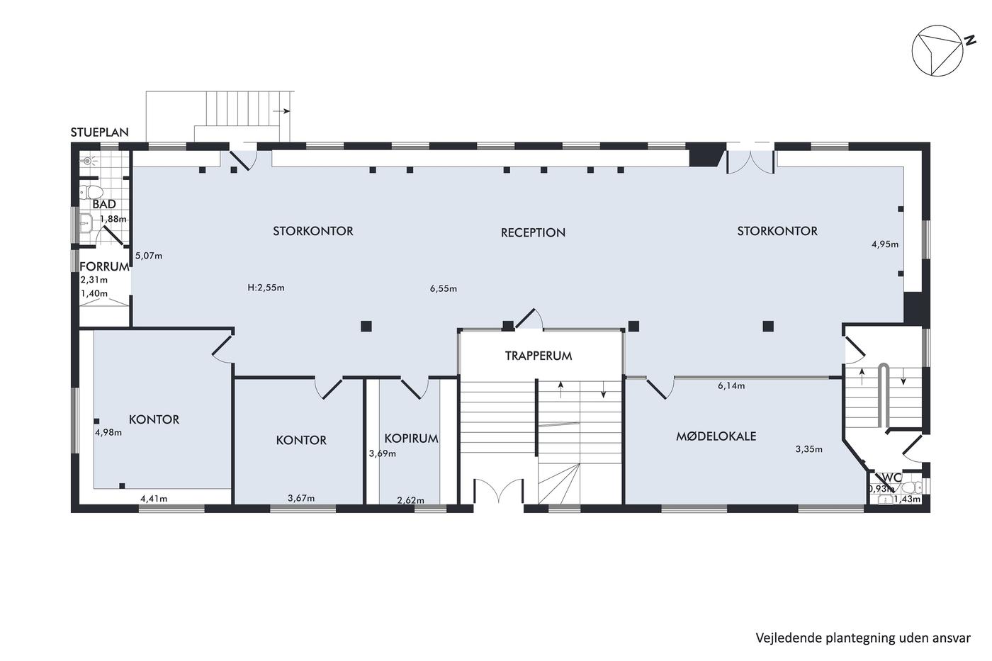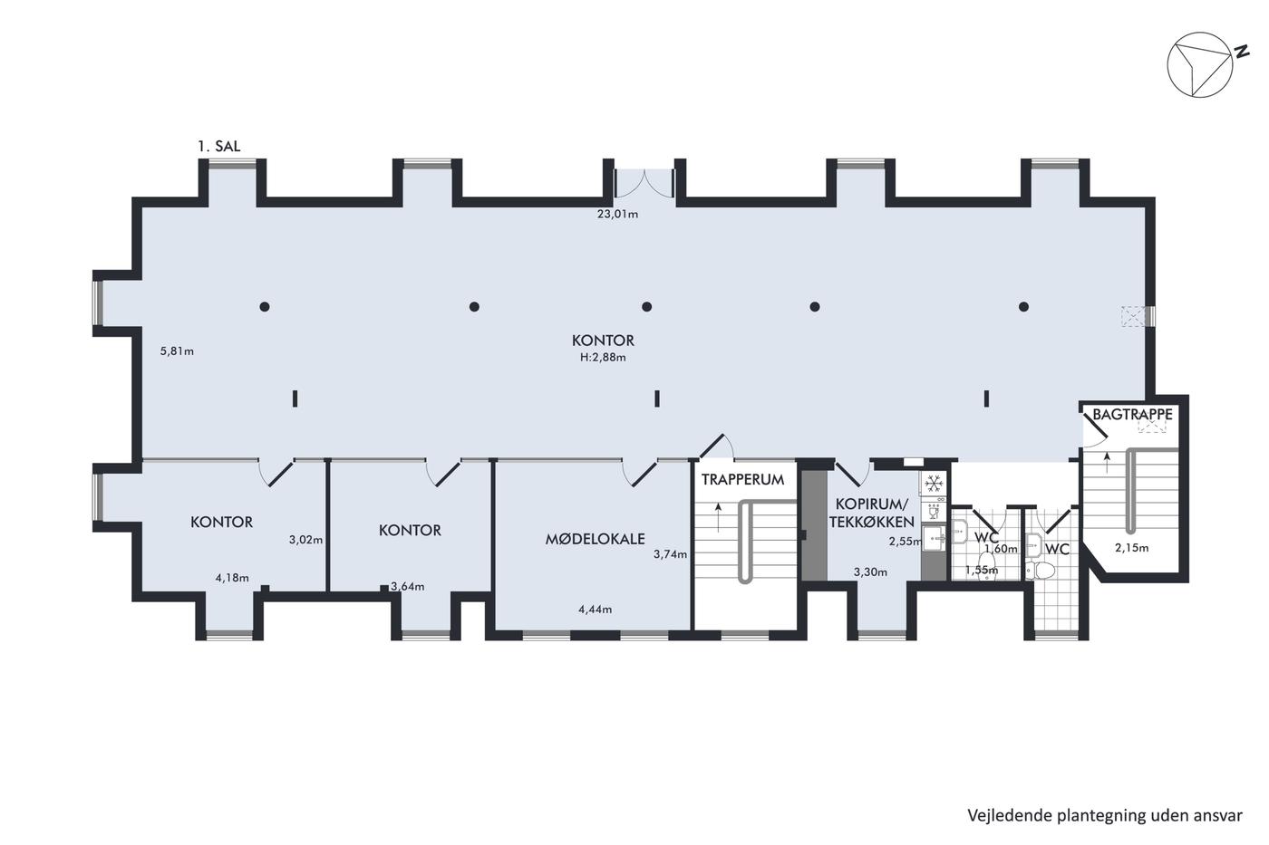 Dette attraktive lejemål udgør i alt 542 m² erhvervsareal fordelt på to etager samt en tilhørende underetage på 278 m². Ejendommen har hidtil været anvendt som kontordomicil for Arkitektfirmaet NORD A/S og fremstår i dag særdeles velholdt og fuldt indflytningsklar.
