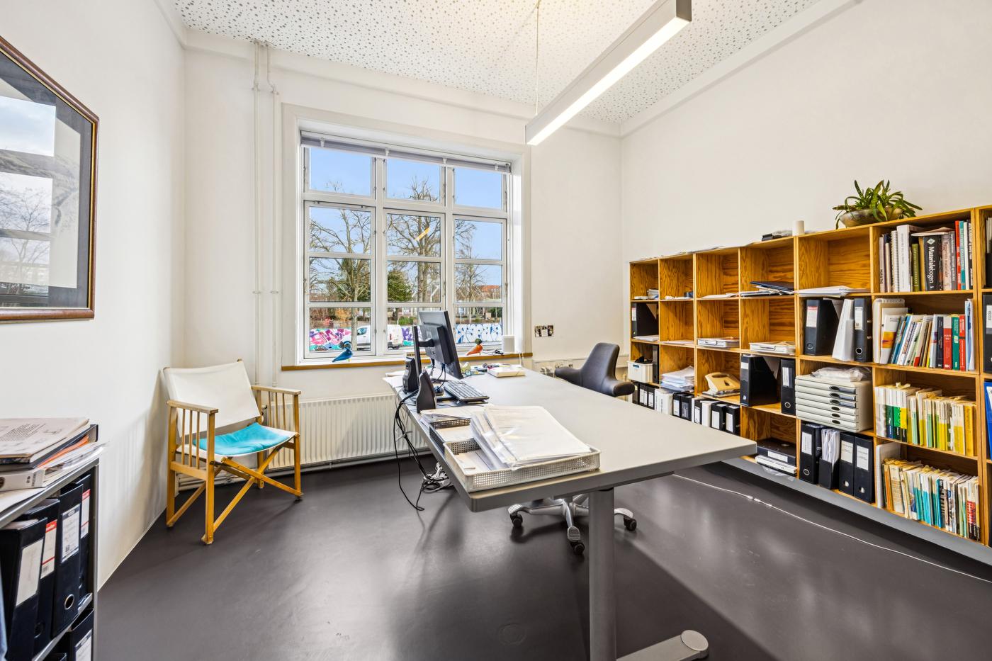 Lejemålet repræsenterer en enestående mulighed for at erhverve ét af byens mest markante og velbeliggende kontordomiciler. Ejendommen er opført med murede facader i teglsten, smukke sprossede vinduer og kviste som tilsammen giver bygningen et unikt og arkitektonisk karakterfuldt udtryk.