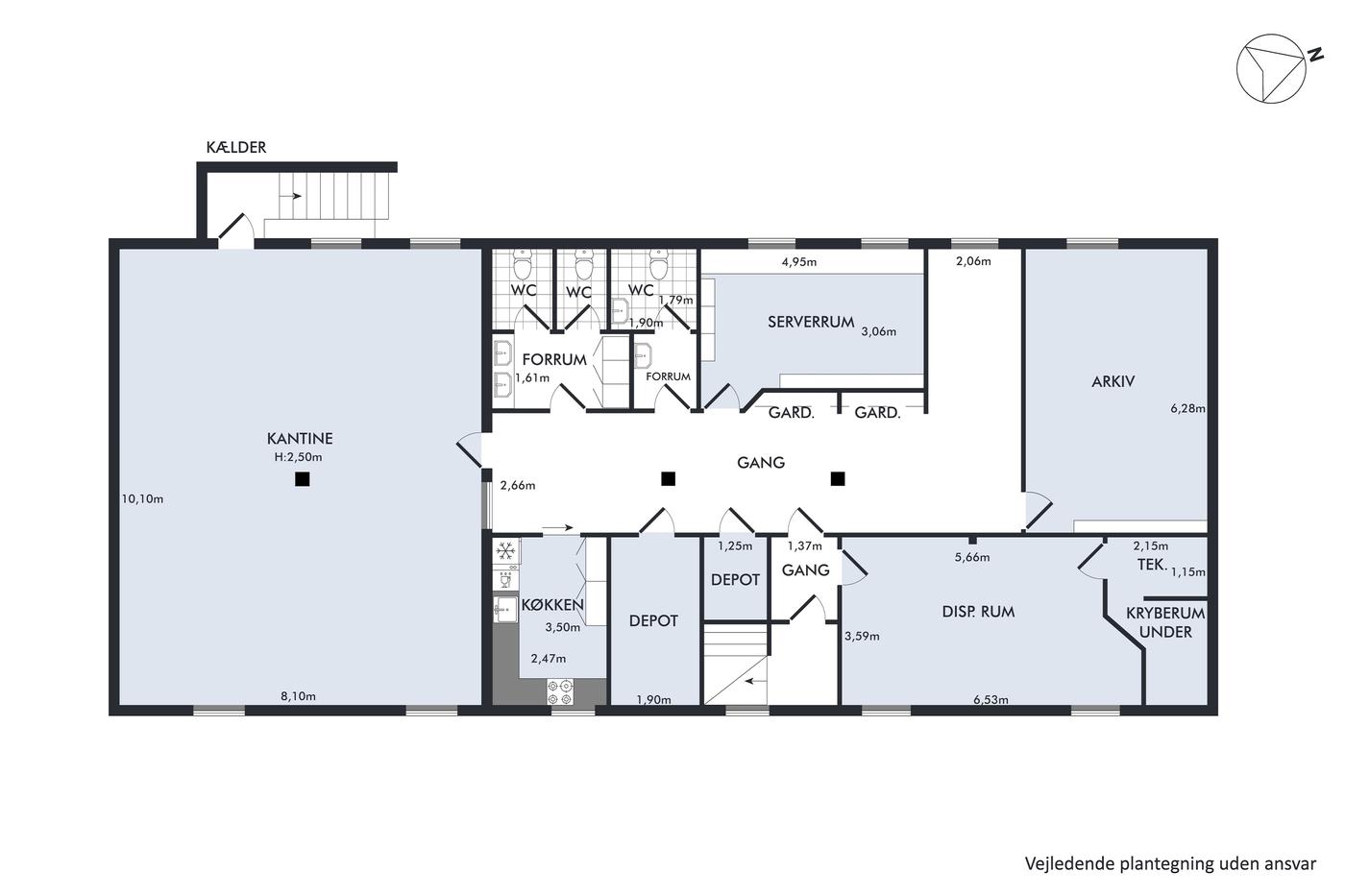 - 542 m² kontorareal + 278 m² underetage med kantine / velfærd