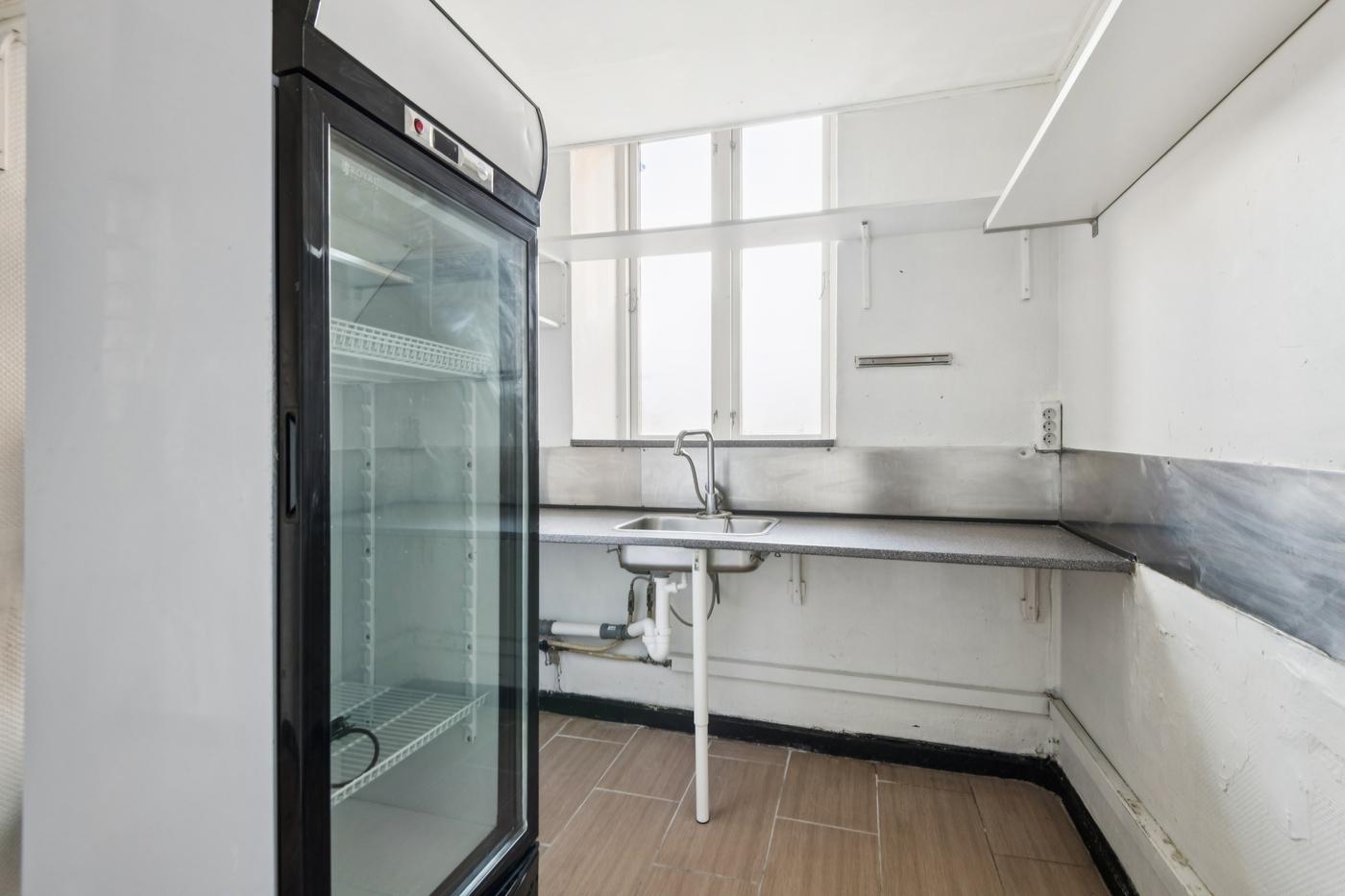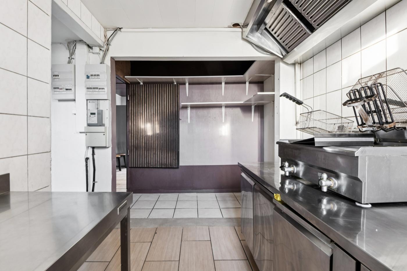 Lejemålet består af et rummeligt område, hvor køkkenet kan etableres, samt en mindre del, der kan benyttes som kundeområde. Derudover er der adgang til et mindre lager og personalefaciliteter.