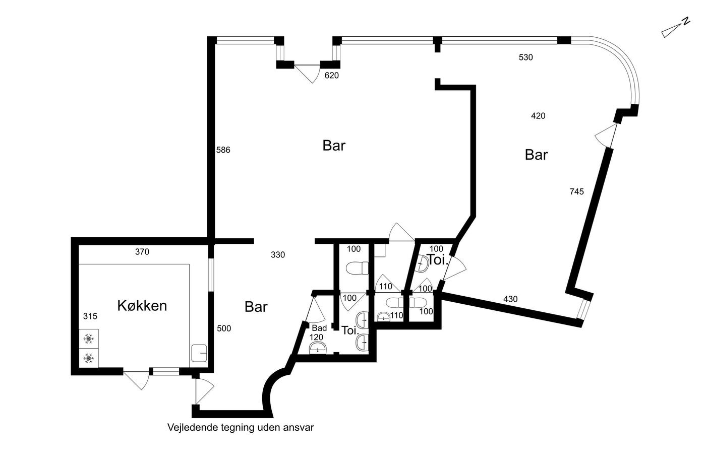 Lejemålets nuværende indretning er: · Værtshusets største lokale er indrettet med bar og siddepladser i åbent miljø · Et stort lokale ud til Vesterbro og Toldbodgade er indrettet med pool bord og sidde pladser · Et mindre køkken med egen adgang Nuværende inventar kan overtages som en del af lejemålet.