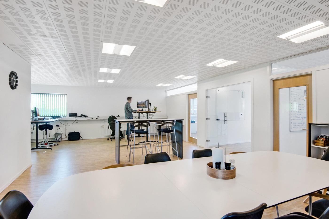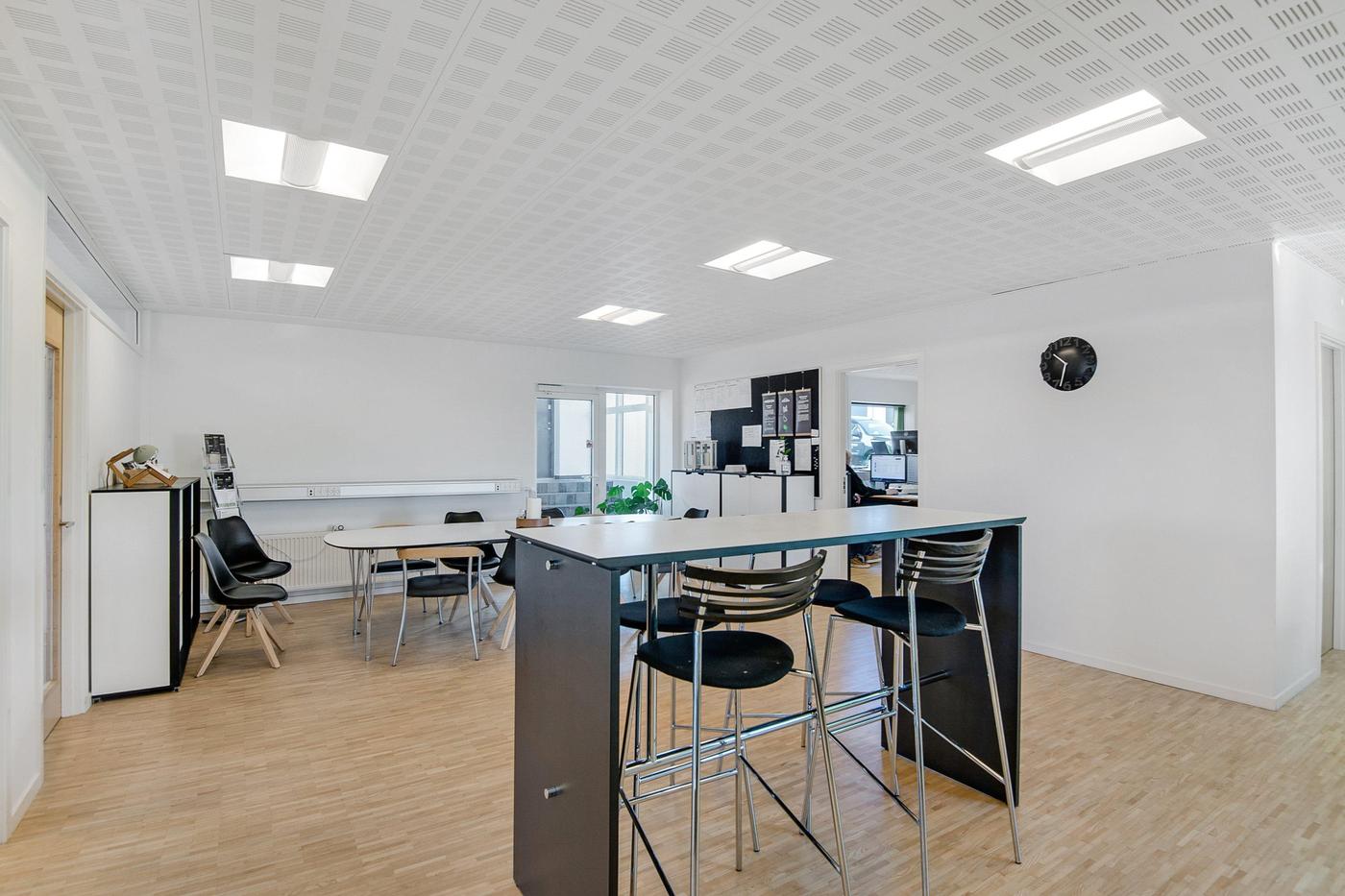 Lejemålet er indrettet med storrumskontor, 3 kontorer med glasdøre, konferencerum, køkken, depot- og teknikrum samt toiletkerne. Lokalerne vil i samråd med udlejer kunne ændres til anden indretning.