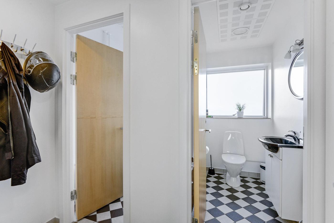 Lejemålet fremtræder i særdeles præsentabel stand udvendigt med vandskurede facader i hvid og vinduer og døre i granitgrå. Der er installeret fælles alarmsystem i bygningen.