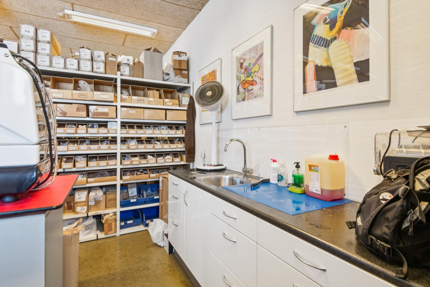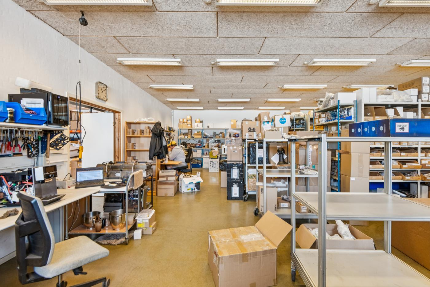 - Lager/produktion opdelt i 4 regulære lokaler, forbundet med indvendige døre