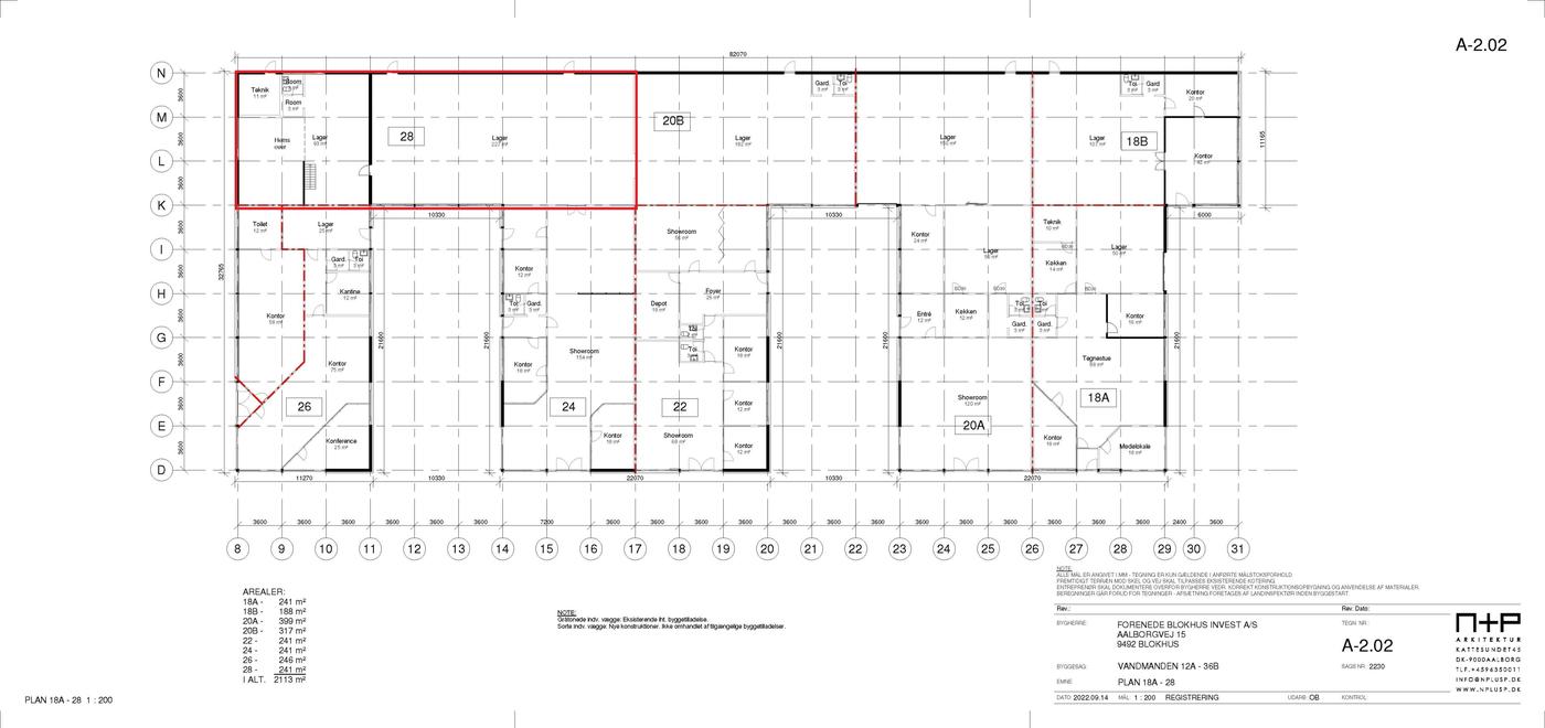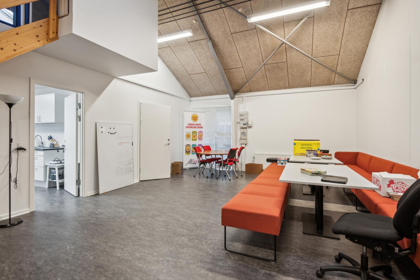 Lejemålet er på i alt 376 m² og består af ca. 65 m² kontor, the-køkken og toilet samt 311 m² regulært lager. Derudover et indskudt dæk til opbevaring eller ekstra kontor (ikke godkendt).