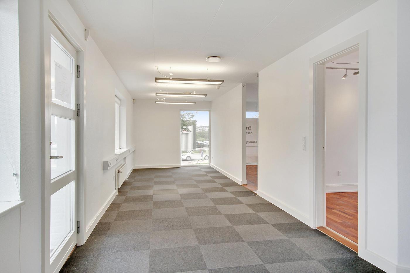 Ejendommen er indrettet med kontorer i forskellige størrelser, møderum samt kantinefaciliteter i stueplan, mens underetagen er indrettet til lager og værksted. Ejendommen fremstår lys og velindrettet med hvide vægge og en kombination af gulvtæpper, klinker og træ på gulvene, og i øvrigt i en god og velvedligeholdt stand.