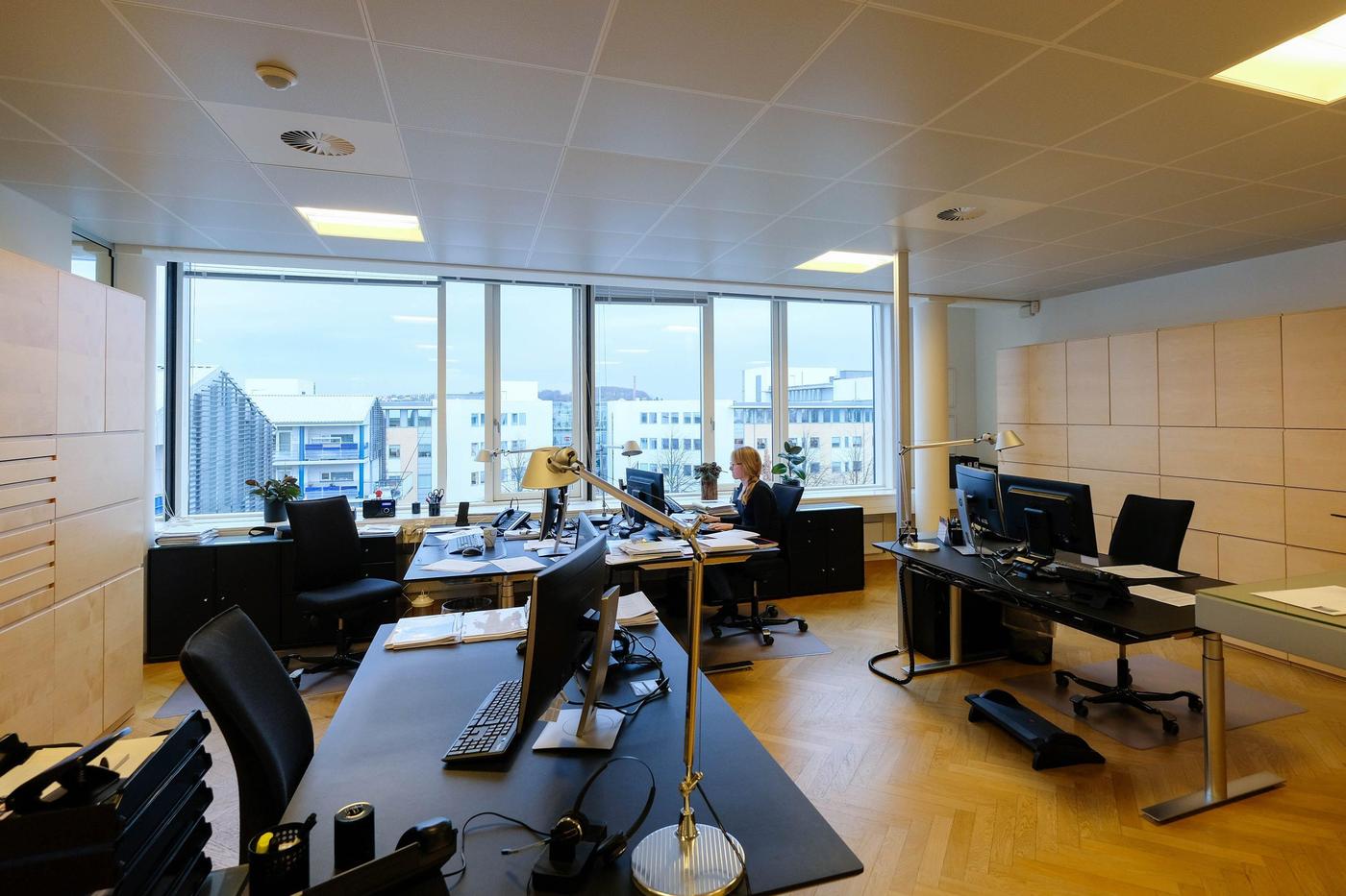 Lejemålet er indrettet med kontor i 2 plan med velfærdsfaciliteter og køkken i stueplan. 1. salen er indrettet med en kombination af storrumskontor og mindre mødelokaler. Lokalerne fremstår lyse og pæne med tæppebelægning og troldtekt-lofter, hvilket skaber et godt arbejdsmiljø for medarbejderne. Fra stueplan er der adgang til velholdt og opvarmet lager. Ligeledes er der adgang til lageret fra port i niveau fra ejendommens modsattet side.