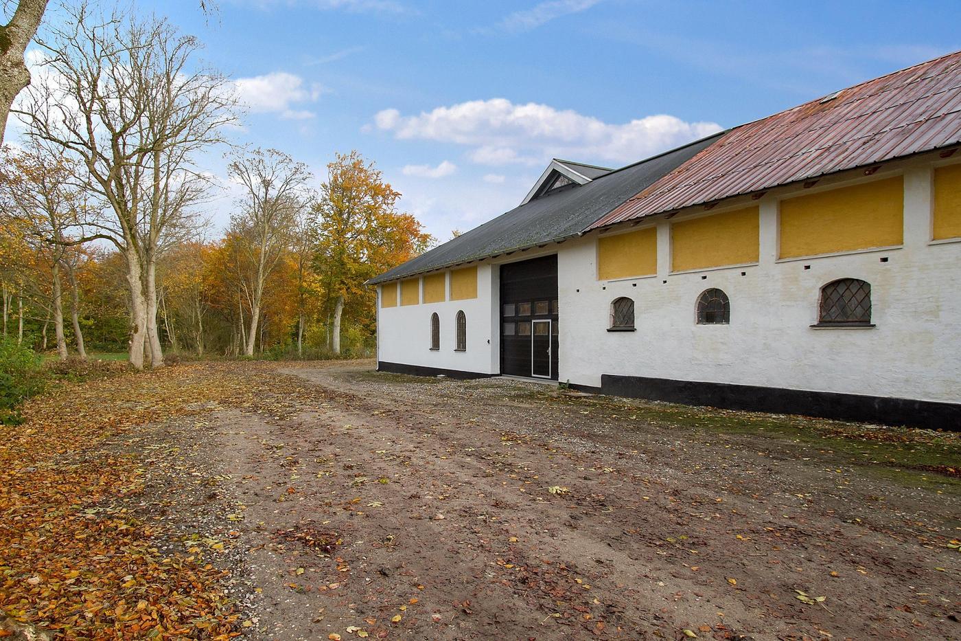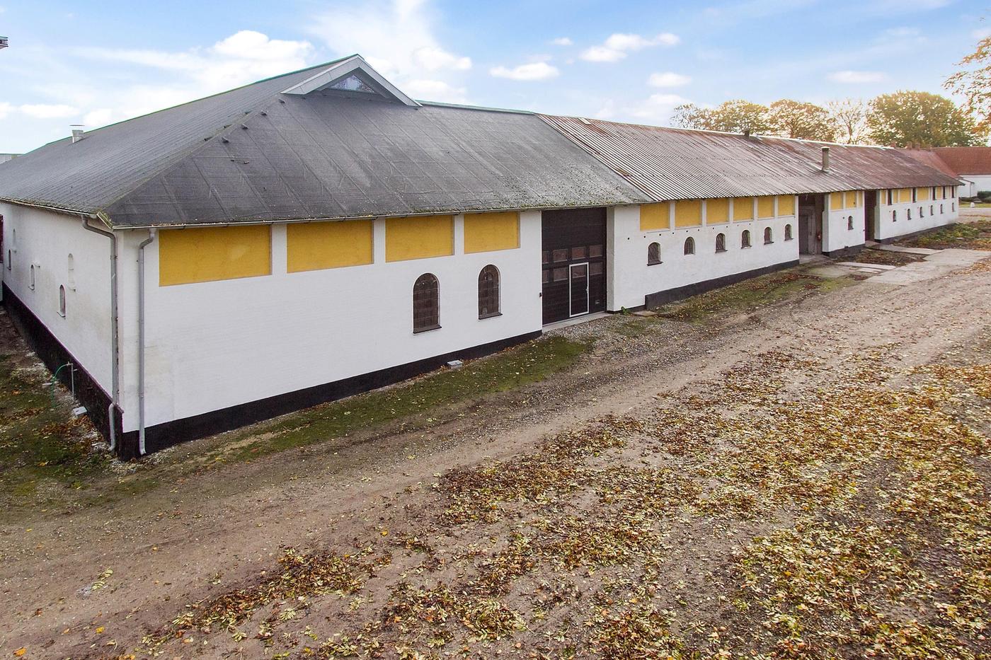 I lagerbygningen/produktionslokalet er der 9 meters lofthøjde til kip og 5 meters højde i siden. Hele ejendommen er fuldt isoleret, og gulvet er armeret beton. Der forefindes 2 stk. aluhejseporte (4,5 høj og 5 meter bred) i niveau. Der er gode strømforhold i ejendommen med 163 ampere, og derved kan ejendommen også anvendes til visse former for produktion.