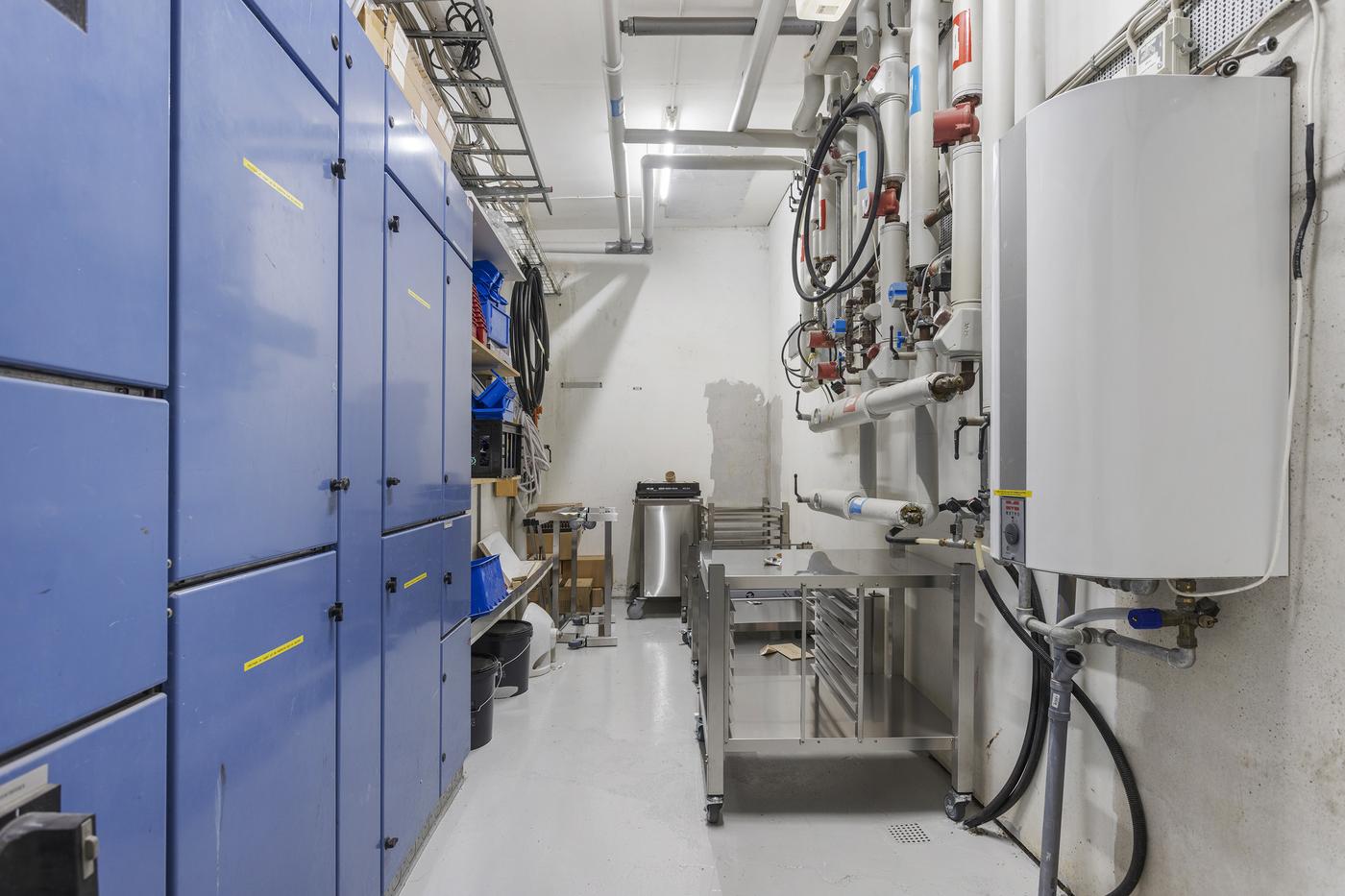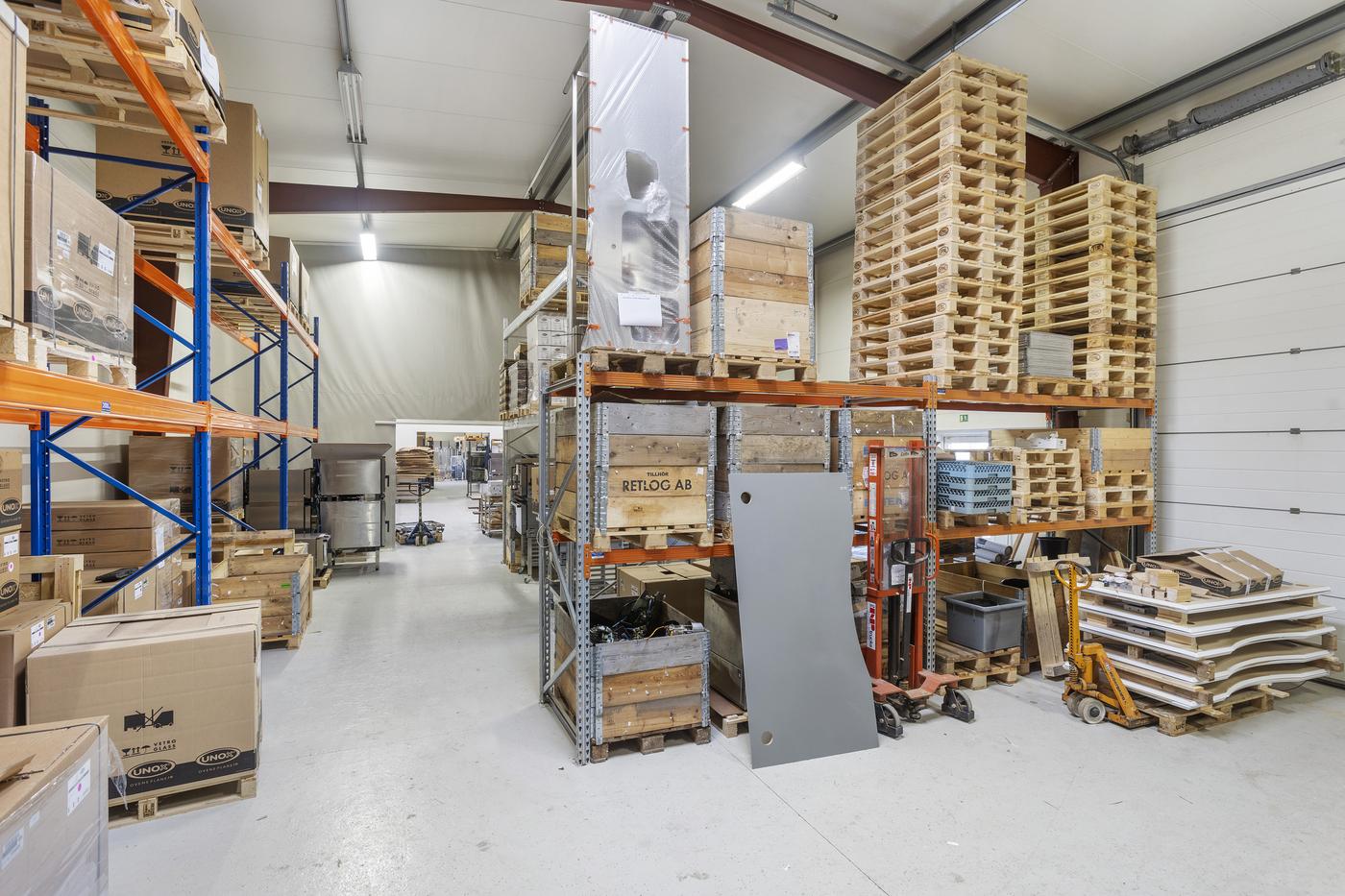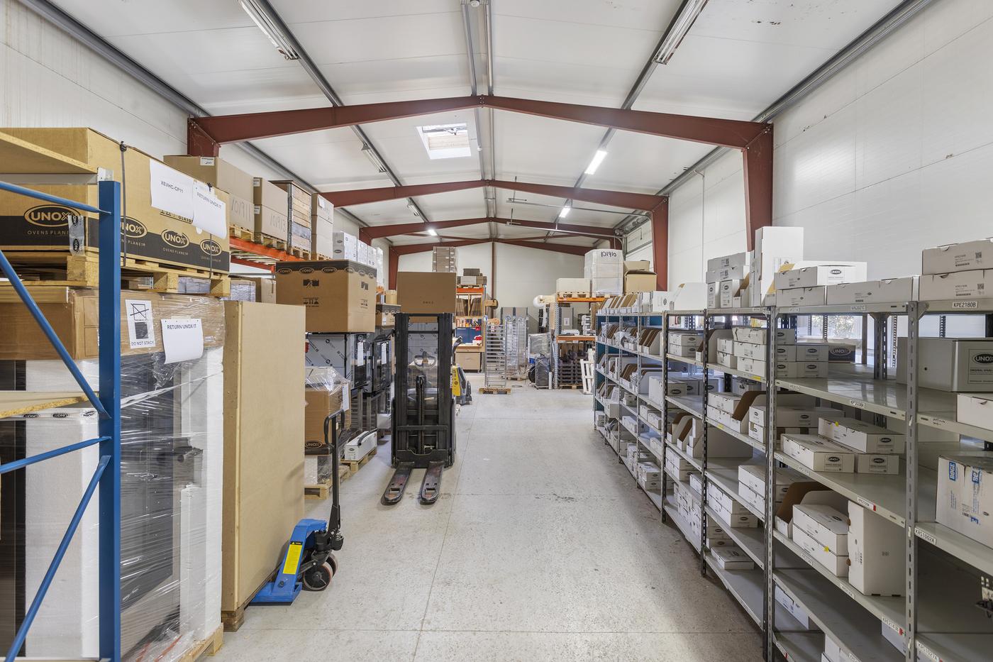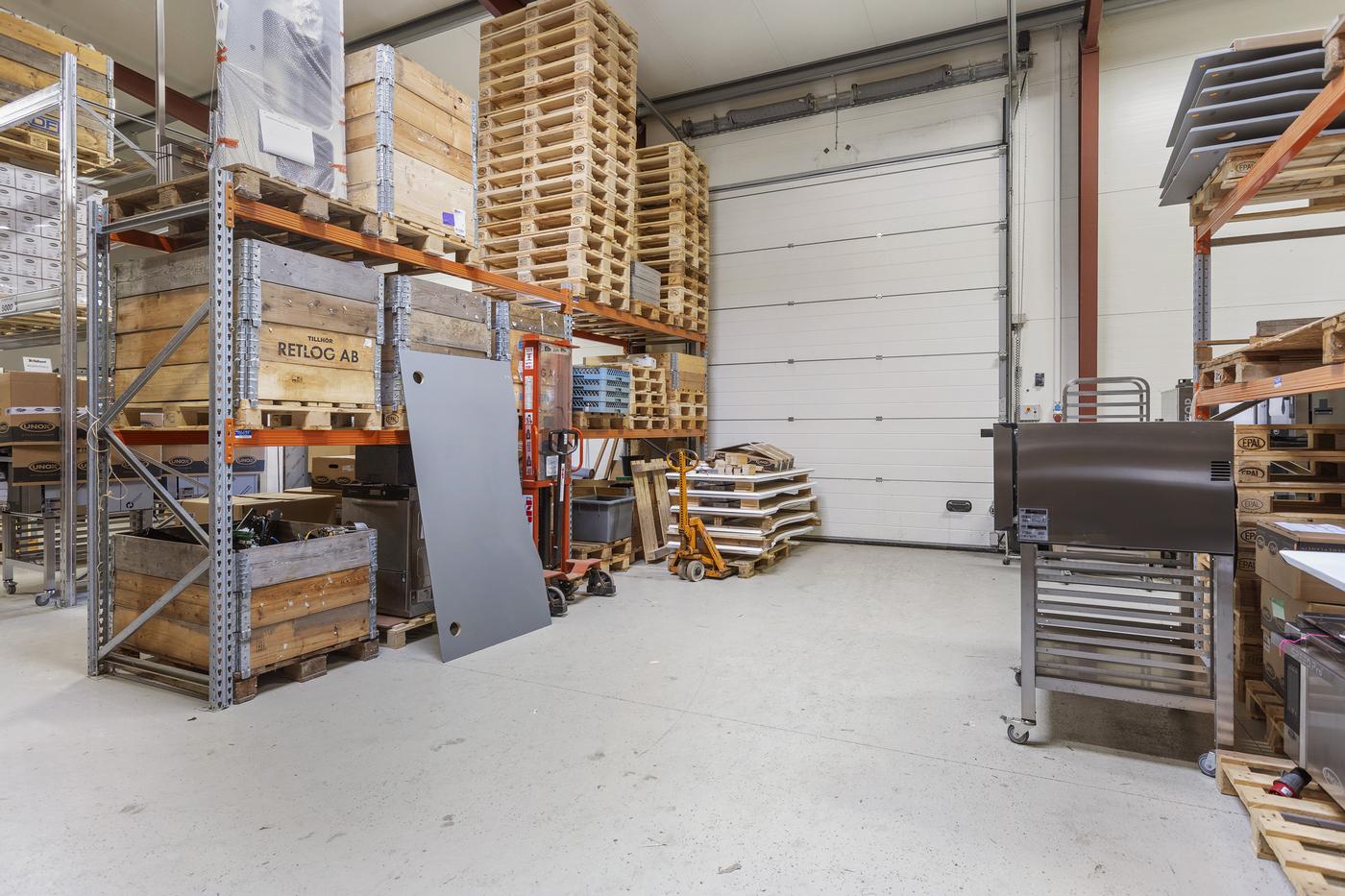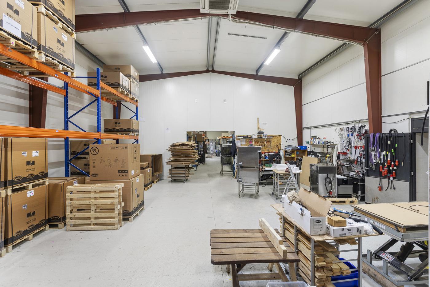 I 2009 er der tilbygget en stor og funktionelt højloftet lagerbygning, og bygningen er sektionsopdelt og med 2 automatiske porte. Der er i alt 558 m² lagerhal, delvist opvarmet med varmepumper og adskilt med preseningsvæg til uopvarmet lager. Tilbygningen er opført i elementer, og med god loftshøjde giver ejendommen et fleksibelt og funktionelt arbejdsbetingelser.