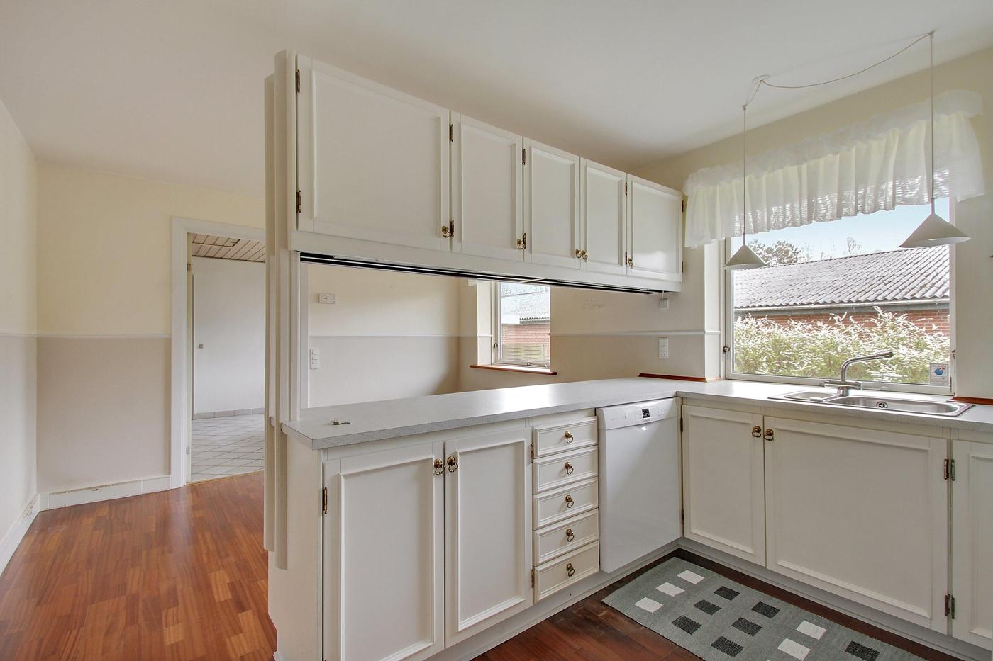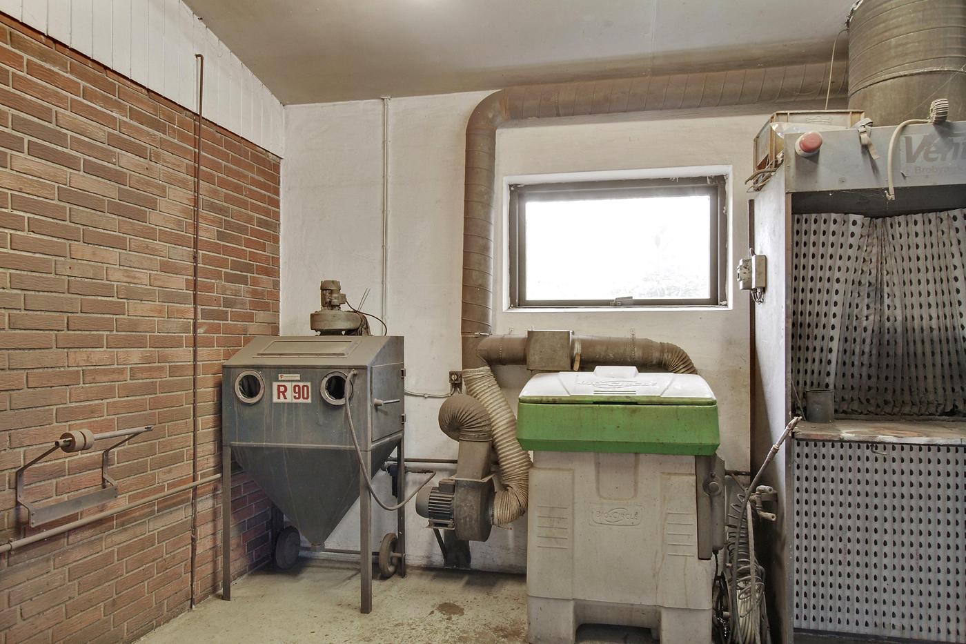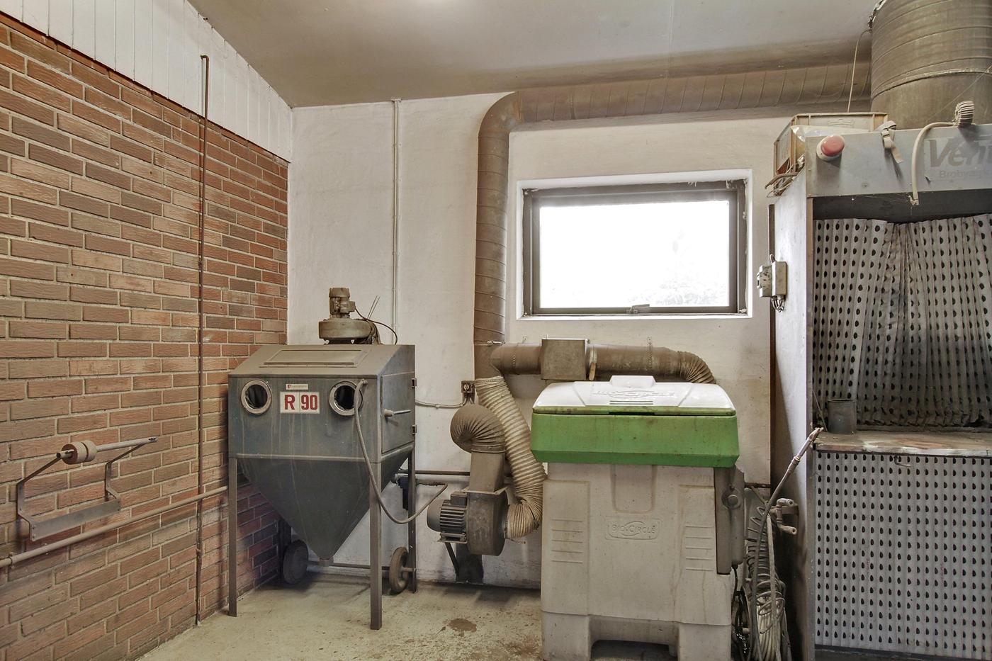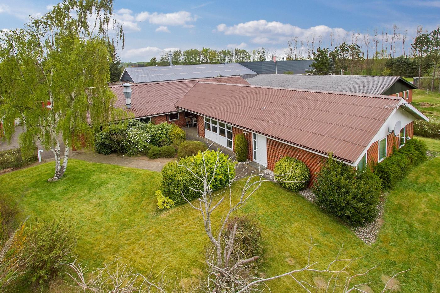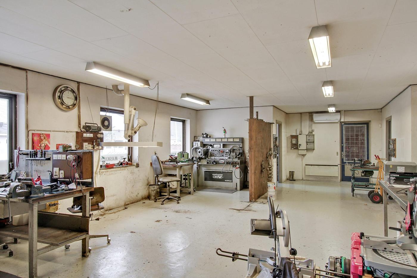 Til ejendommens erhvervsafsnit hører indgangsparti, der i dag anvendes som showroom, og værkstedet har toilet/bad, mindre køkken/frokostrum og kontor. Der er portadgang til erhvervslejemålet. Desuden medfølger til erhvervslejemålet, en garagebygning med 3 lukkede garager med hvide vedligeholdelsesfrie plastporte.