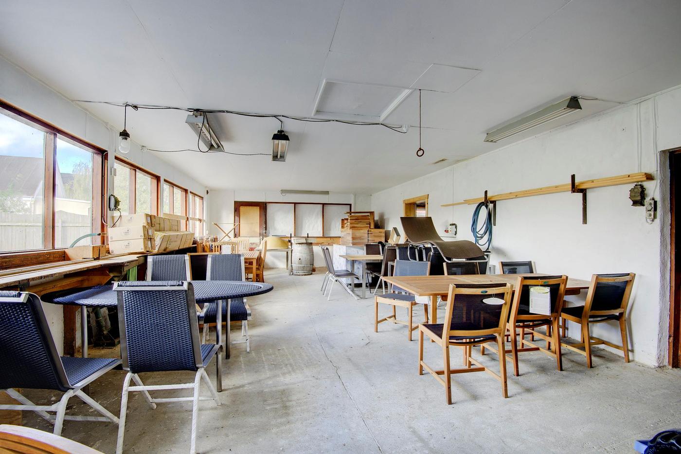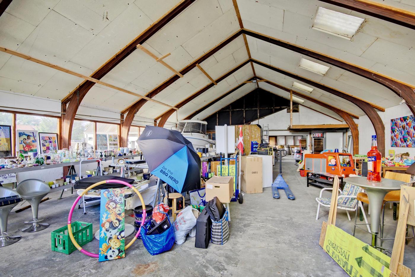 Ejendommen indeholder 2 store haller med højt til loftet med store træporte. Hallerne er tidligere blevet benyttet til maling, produktion og samling af annekser og dele af sommerhuse.Nu benyttes det primært som lager og opbevaring. Der er mulighed for etablering af kontor/personalestue i den del af ejendommen med almindelig lofthøjde. En bygning med mange forskellige anvendelses muligheder, såsom f.eks. produktion, håndværkervirksomhed, lager eller lignende.