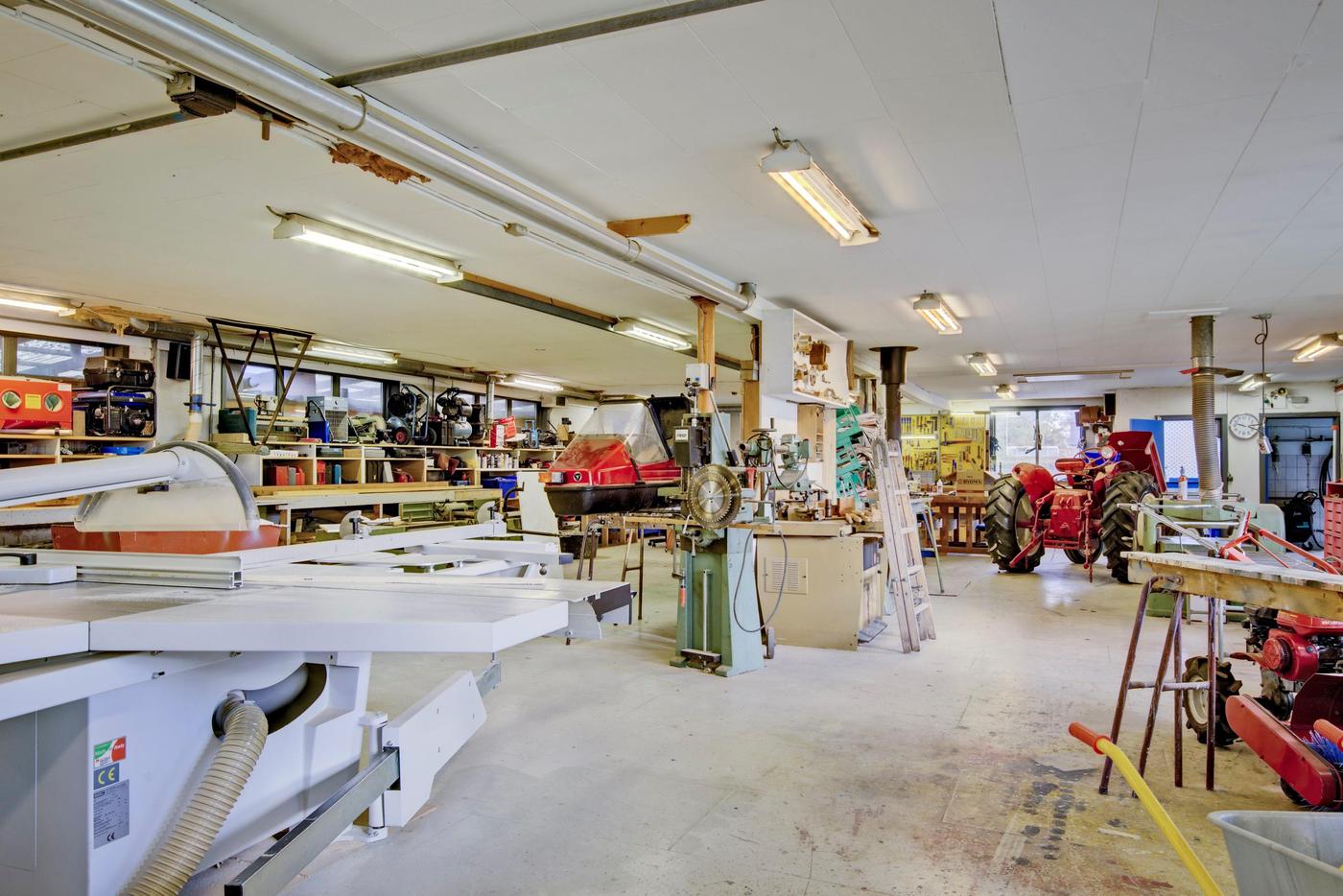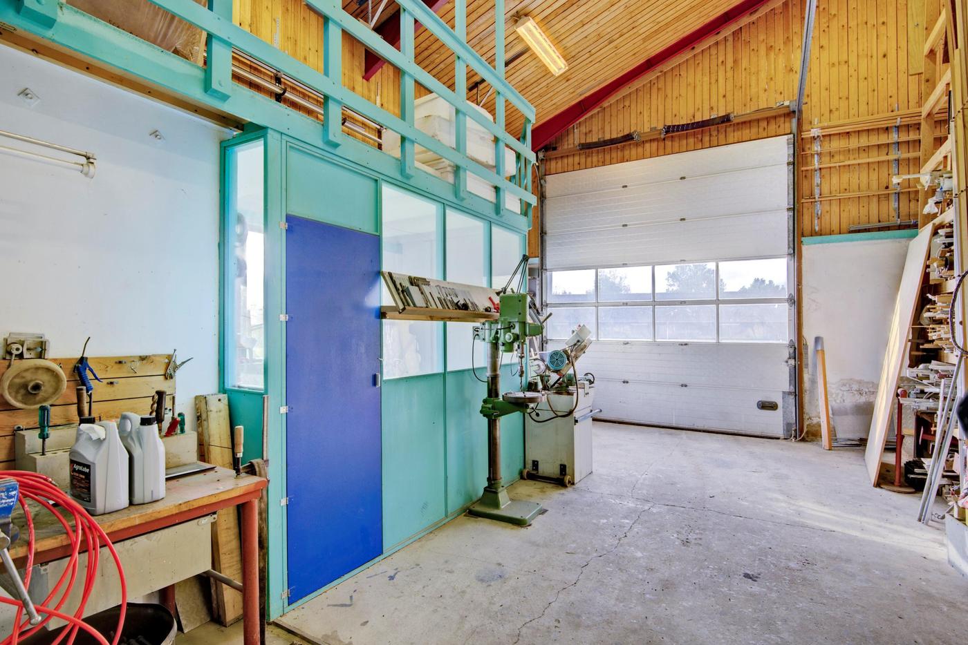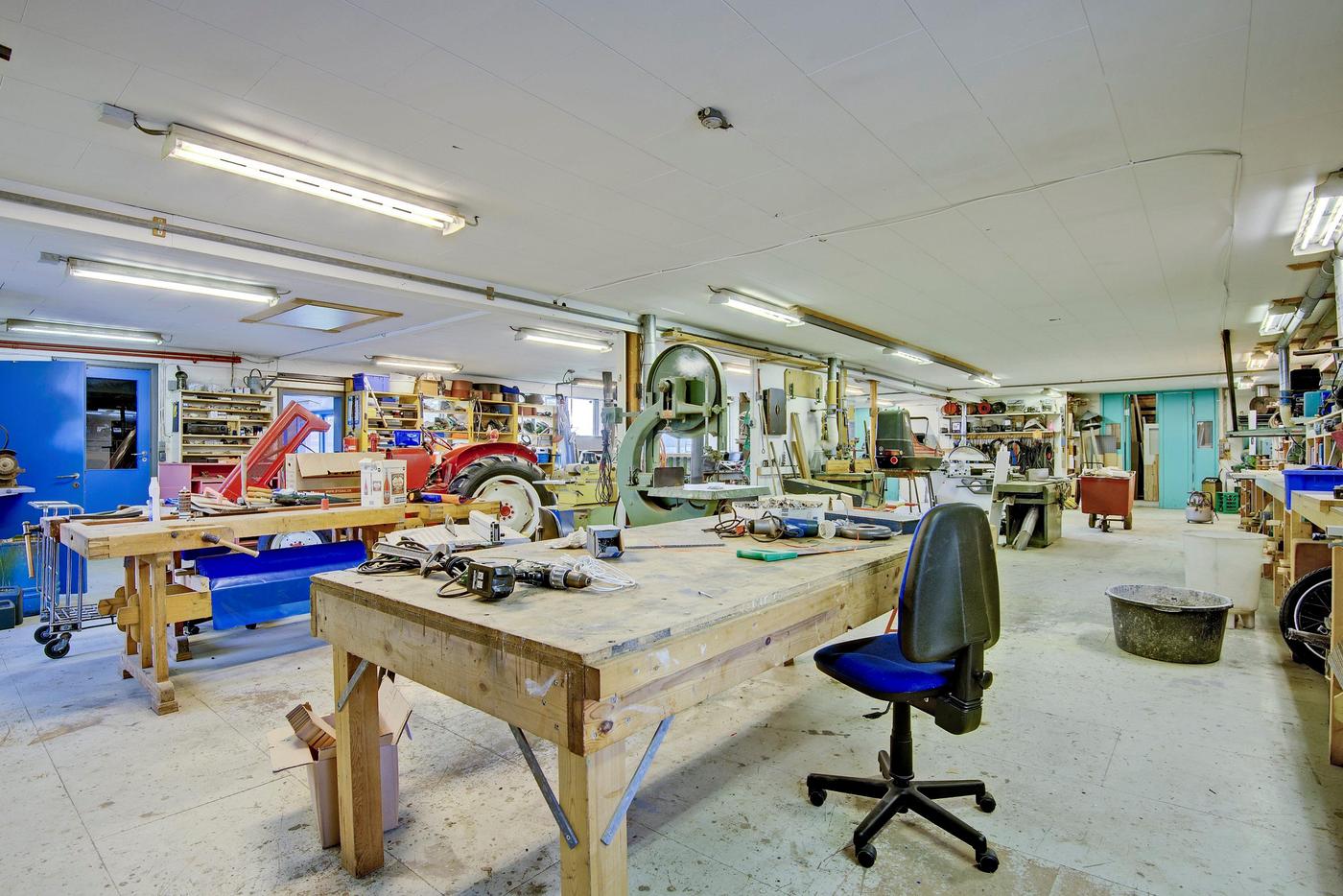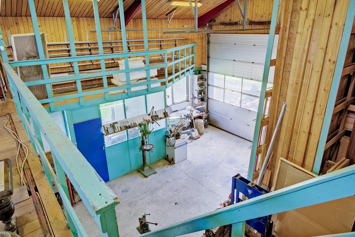 Ejendommen er blevet benyttet til tømrervirksomhed siden 1979, så er der adskillige muligheder for opbevaring af træ og lignende i forskellige størrelser og mål under halvtage og i det højtloftede lager.
