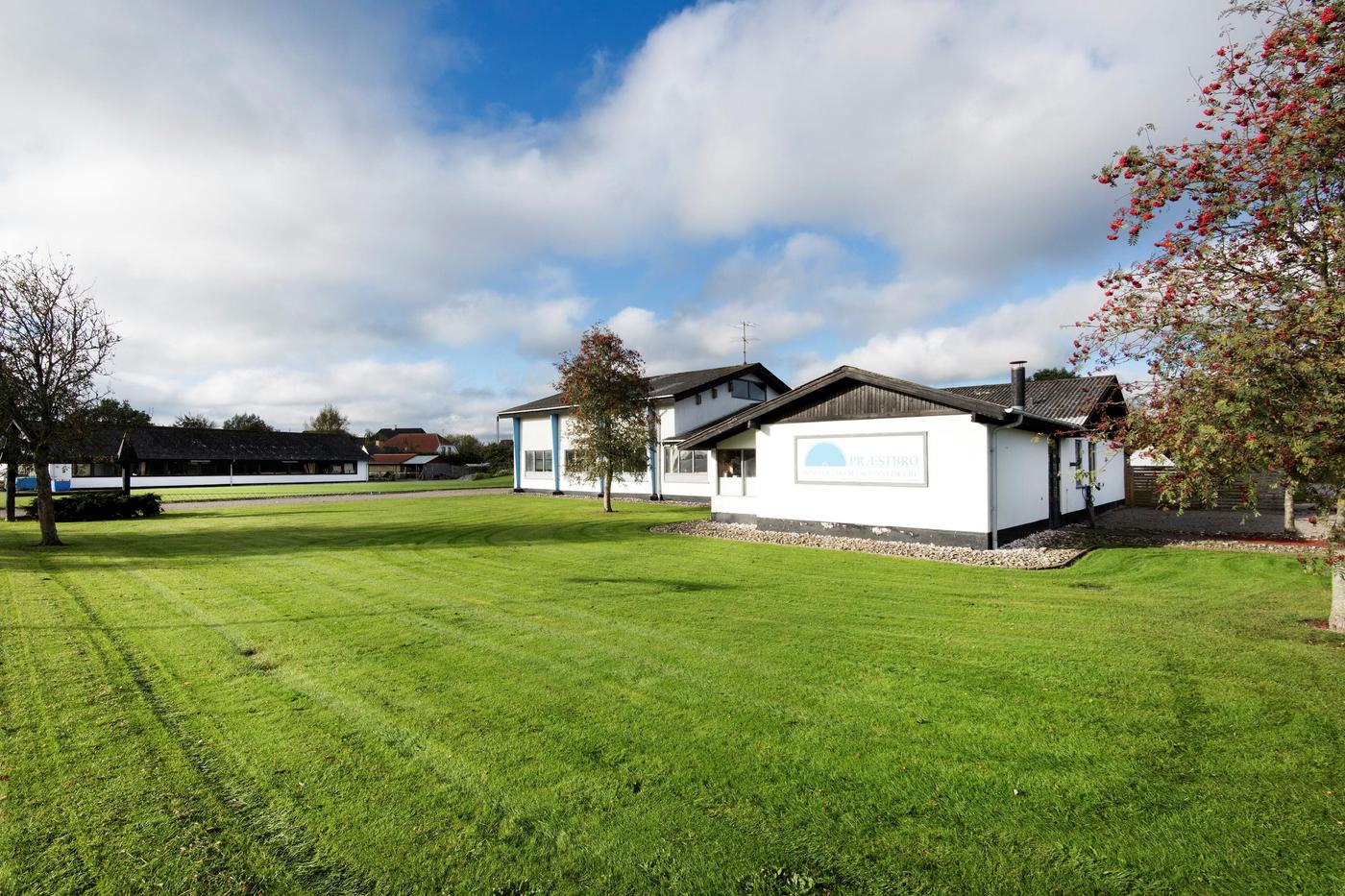 Ejendommen er beliggende centralt i Præstbro med kort afstand til motorvejen, kun 5 kilometer. Der er tale om en erhvervsejendom med et etageareal på 645 m². Bygningen er opført 1967 og om-/tilbygget 1983 i letbeton og træ, og tagbelægningen er fibercement. Vinduer er i trærammer, og gulvet er betongulv. Varmekilde er oliefyr, og bekkasinen brændeovn. Til ejendommen er der gode tilkørselsforhold samt grusparkeringsplads ved indgangen.