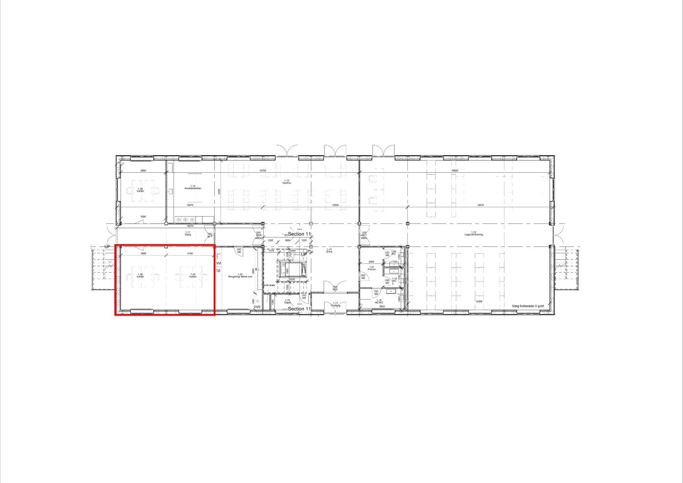 I den opførte bygning er der nu kun et kontorlejemål på 78 m² inkl. andel af fællesarealer tilbage i ejendommens stueetage.