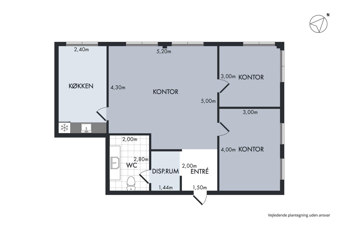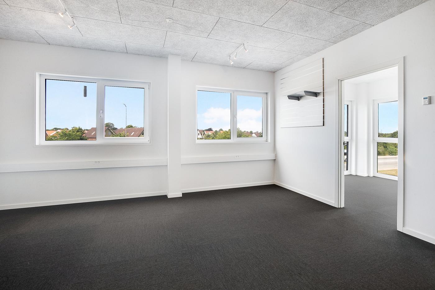 Nordicals udbyder flot kontorlejemål til leje i Hjørring. Lejemålet er beliggende i en pæn og præsentabel bygning mod Ringvejen. Lejemålet byder på 77 m² som fordeler sig på stort forkontor, 2 kontorer, kantine og toilet. Der er indrettet med tæppefliser, akustik lofter, nydeligt køkken og toilet. Kontorlejemålet er lige til flytte ind i, da installationerne til skrivebordet er klar. Der er målere på el, vand og varme. Opvarmning sker ved fjernvarme.