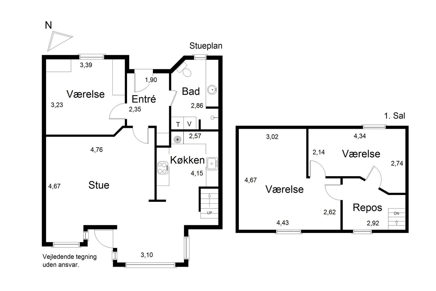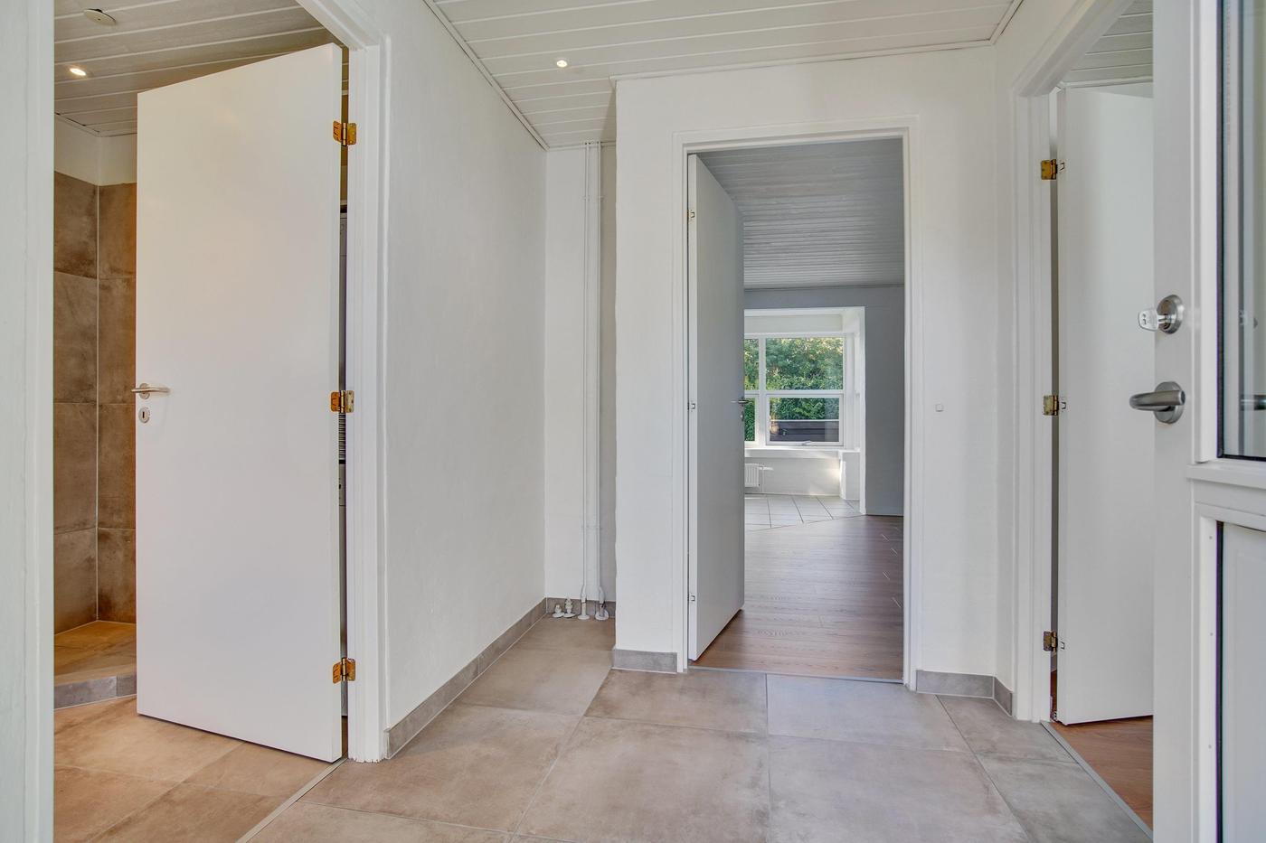 Boligen er indrettet med entre med adgang til badeværelse med vaskemaskine og tørretumbler. Stort soveværelse med skabe. Rigtigt flot nyere køkken/alrum indrettet med god skabs- og bordplads. Alt i nye hårde hvidevarer. Soveværelse med godt lysindfald. Stor stue med skønt lysindfald og gode indretningsmuligheder, herfra er der direkte udgang til terrasse. Opgang til 1. sal med repos og to store værelser.