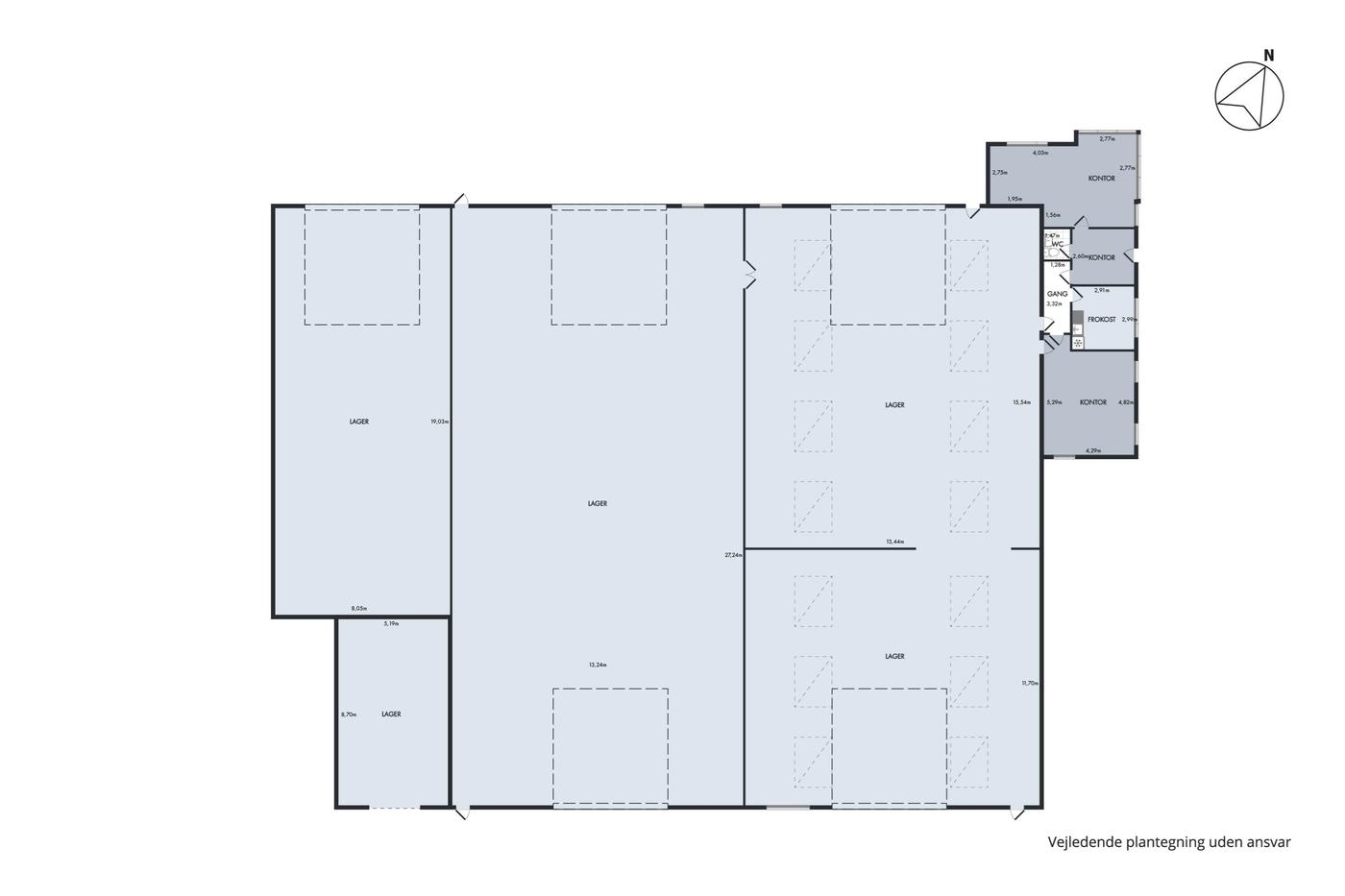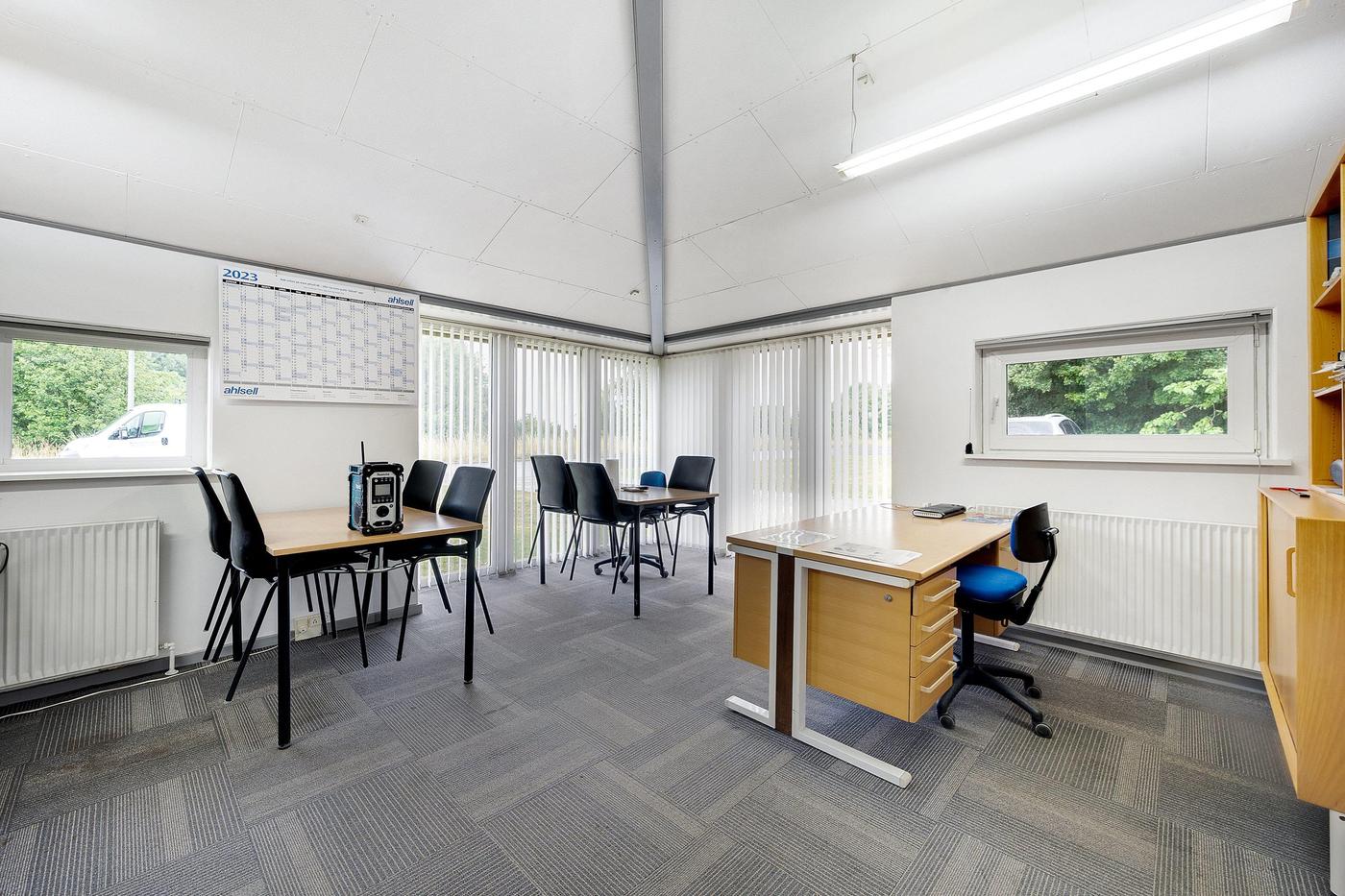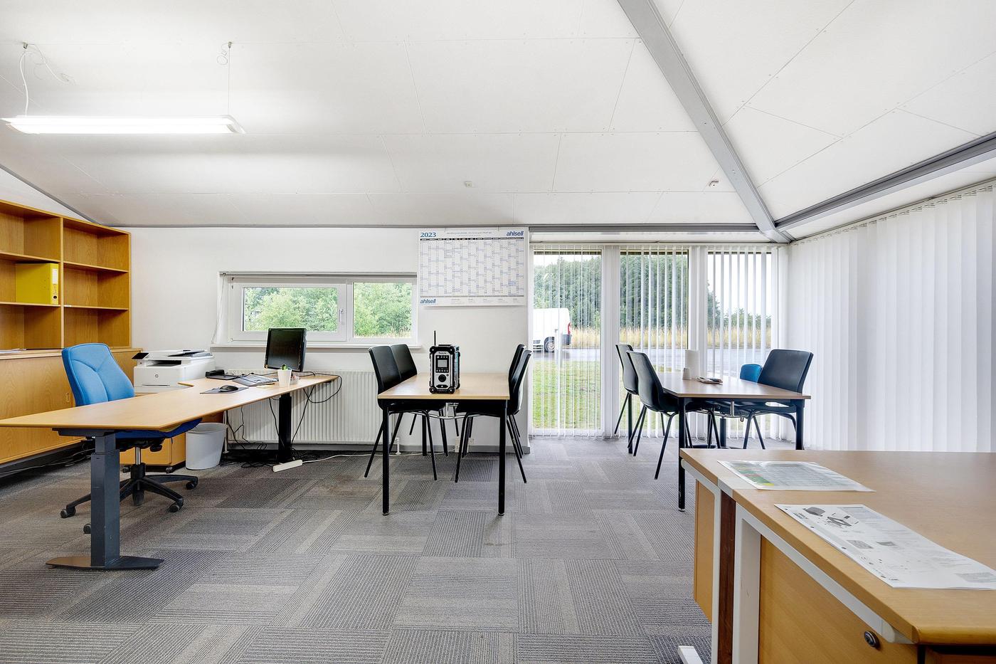 Kontordelen af ejendommen er indrettet med entre, to store kontorer, toilet og kantine. Hele ejendommens matrikel er indhegnet og med elektrisk port.