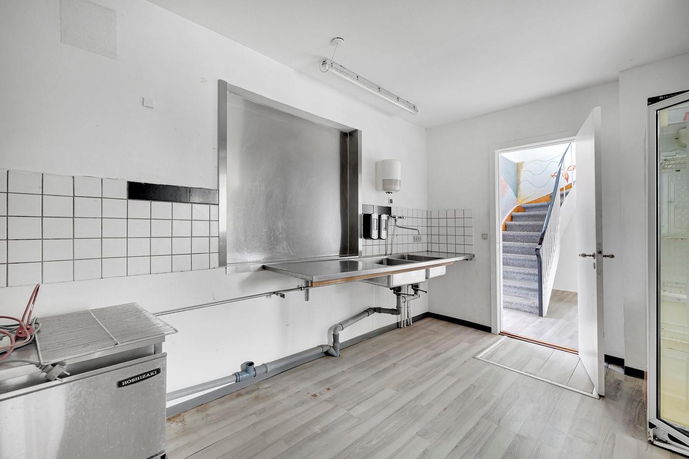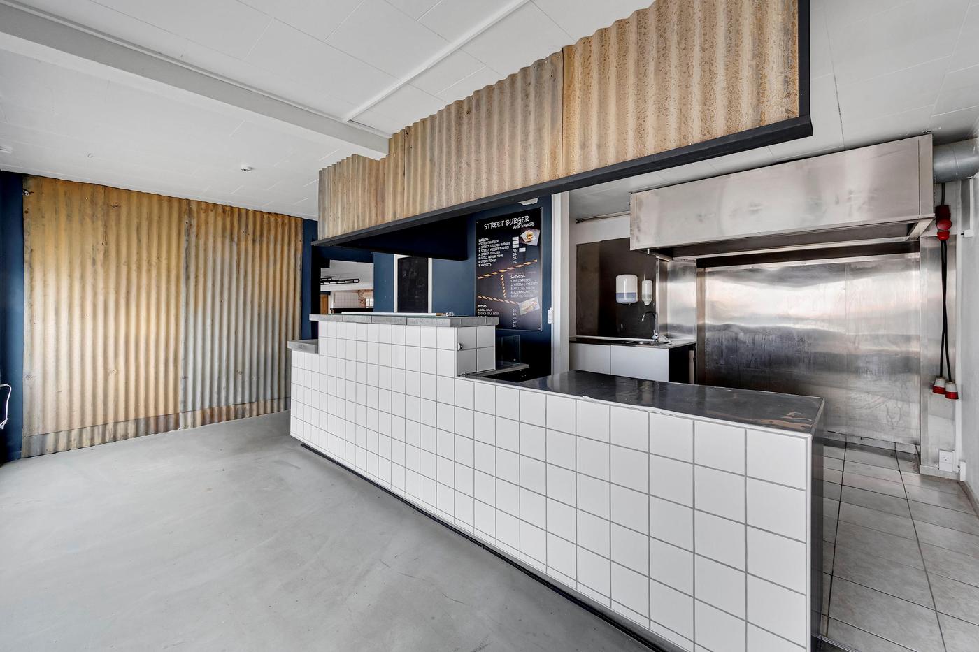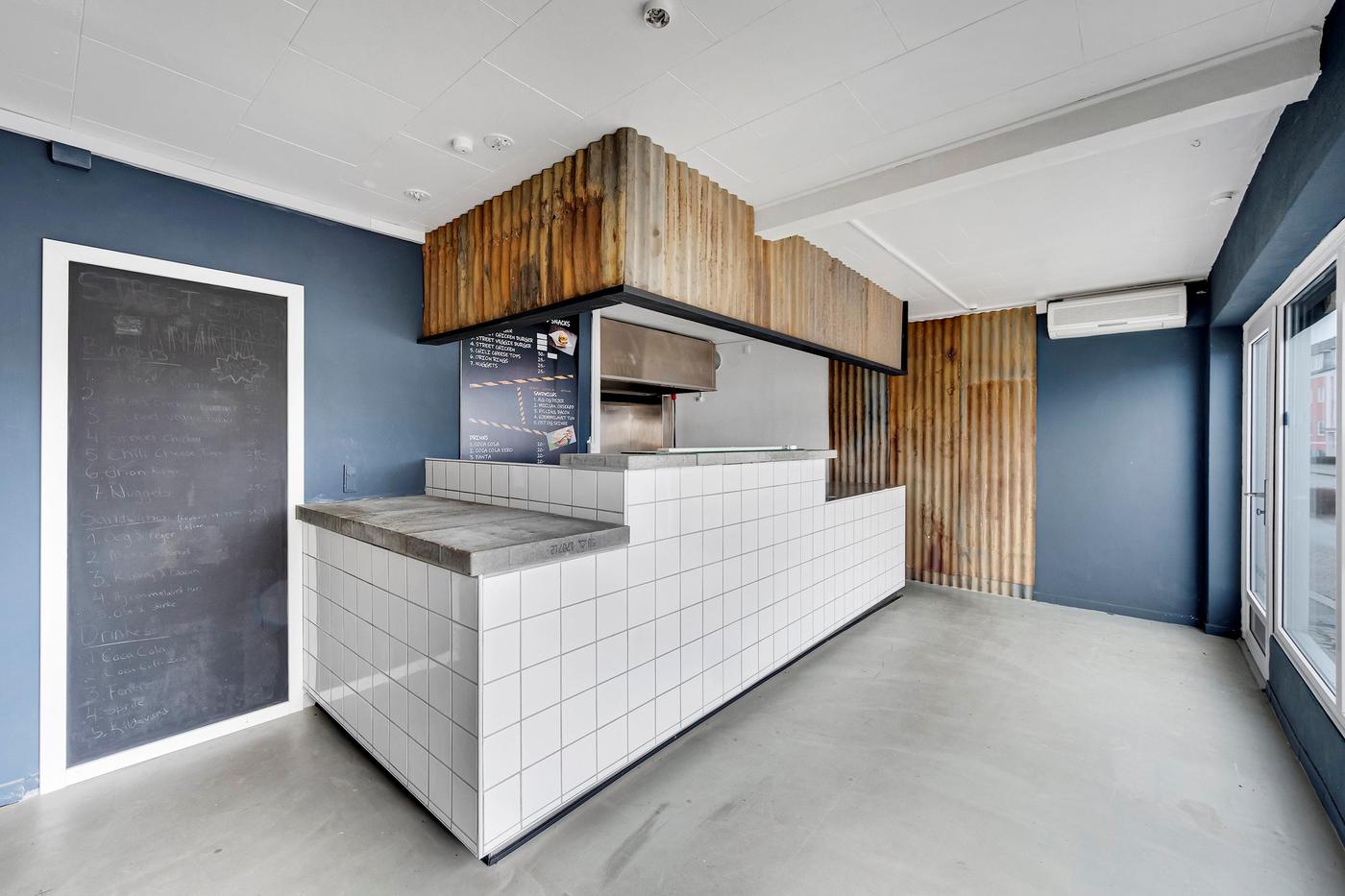 Indvendigt er restaurantdelen udstyret med to kundetoiletter, betongulve og Troltex-lofter. Væggene er delvist beklædt med klinker og hvidmalet mursten. Ejendommen har tidligere været anvendt til streetfood restaurant, og med dens placering tæt på Frederikshavn Gymnasium er der stort potentiale for at drive en restaurant.